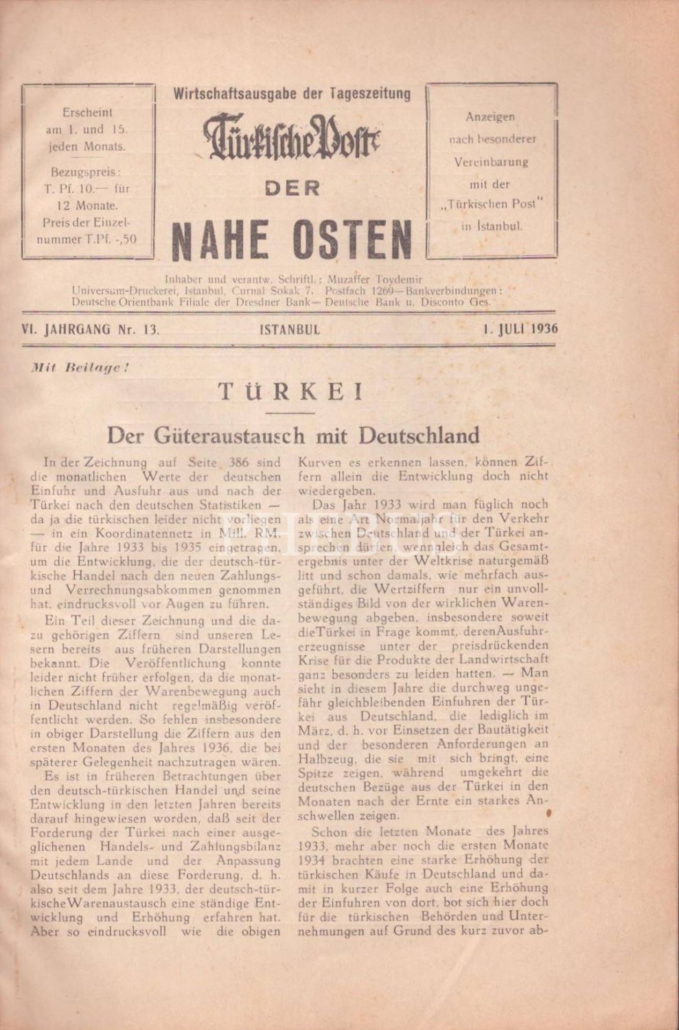TURKISCHE VOFT DER NAHE OSTEN, Muzaffer Toydemir, 1936, Universum Druckerei, İstanbul, 31 sayfa, 20x29 cm...