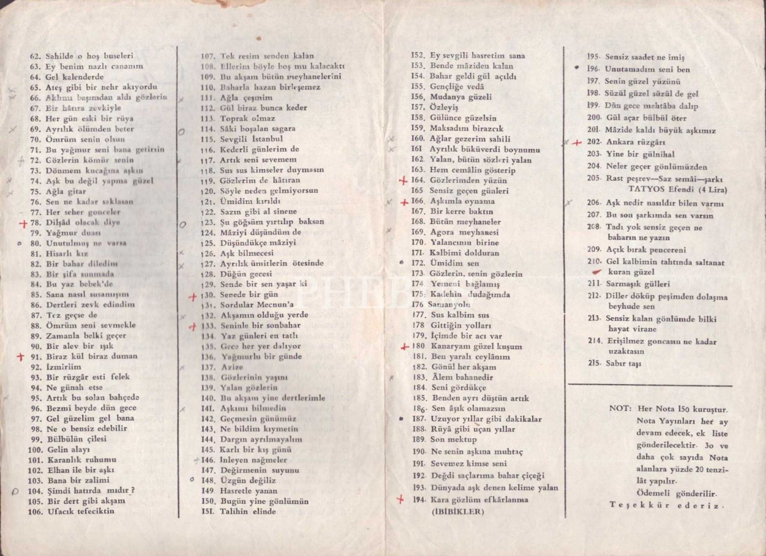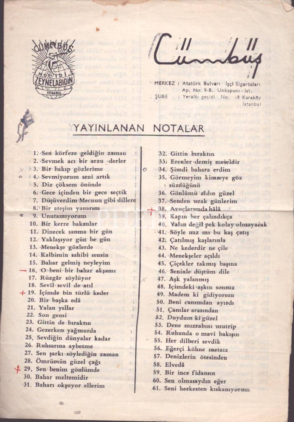 Cümbüş yayınlanan notalar kataloğu, 4 sayfa, 17x25 cm...