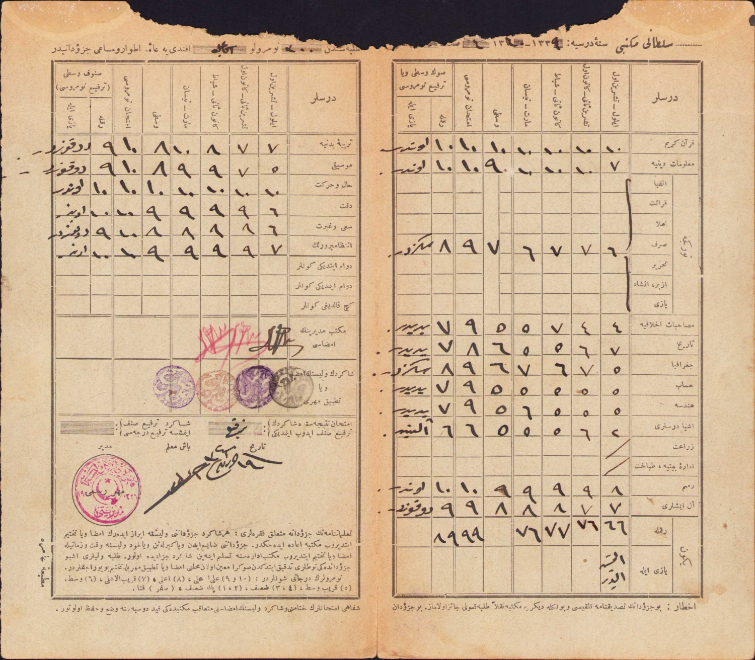 Osmanlıca Sultani Mektebi talebesine ait karne, 1339 tarihli, haliyle, 12x22 cm