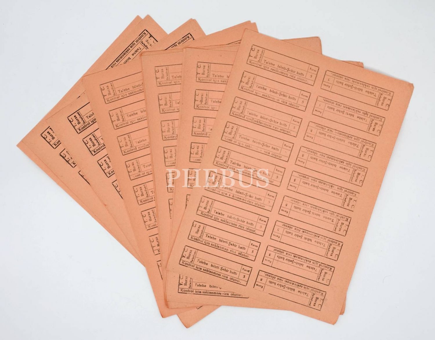 20 adet T.C. Bursa Belediyesi talebe otobüs bileti kağıdı, 18x25 cm...