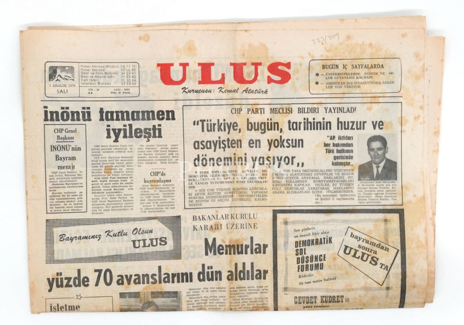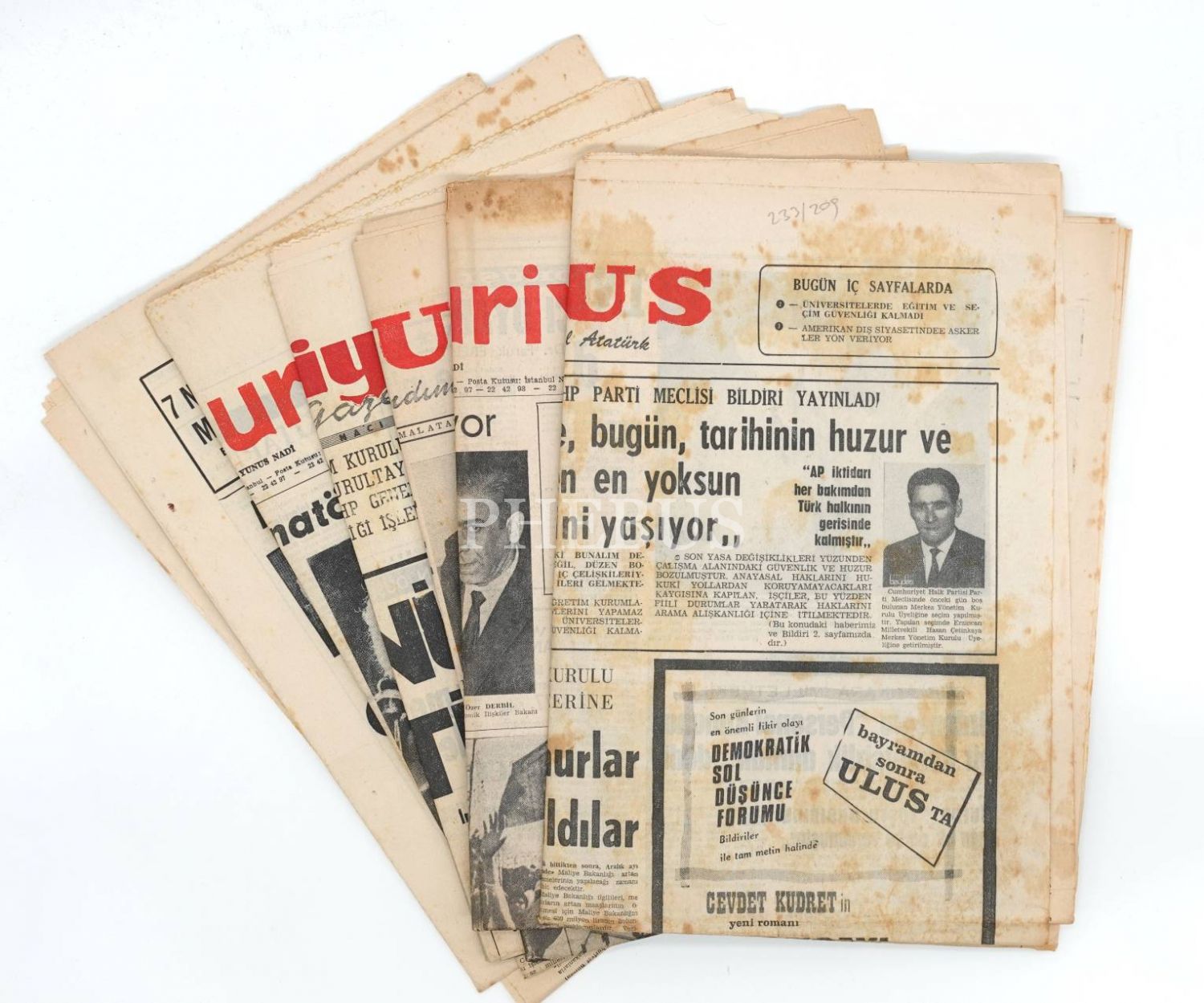1970´li yıllarda yayınlanan Ulus, Cumhuriyet ve Milliyet gazeteleri, 6 adet, 43x58 cm...