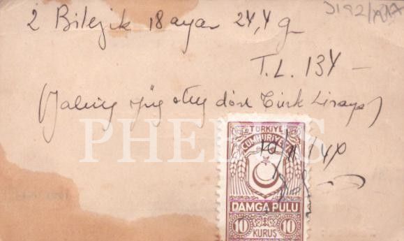 Arka yüzü sipariş notlu ve Damga Pullu. Su görmüş haliyle.