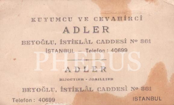 Kuyumcu ve Cevahirci Adler´e ait İstiklâl Caddesi adresli kartvizit, 10x6 cm...