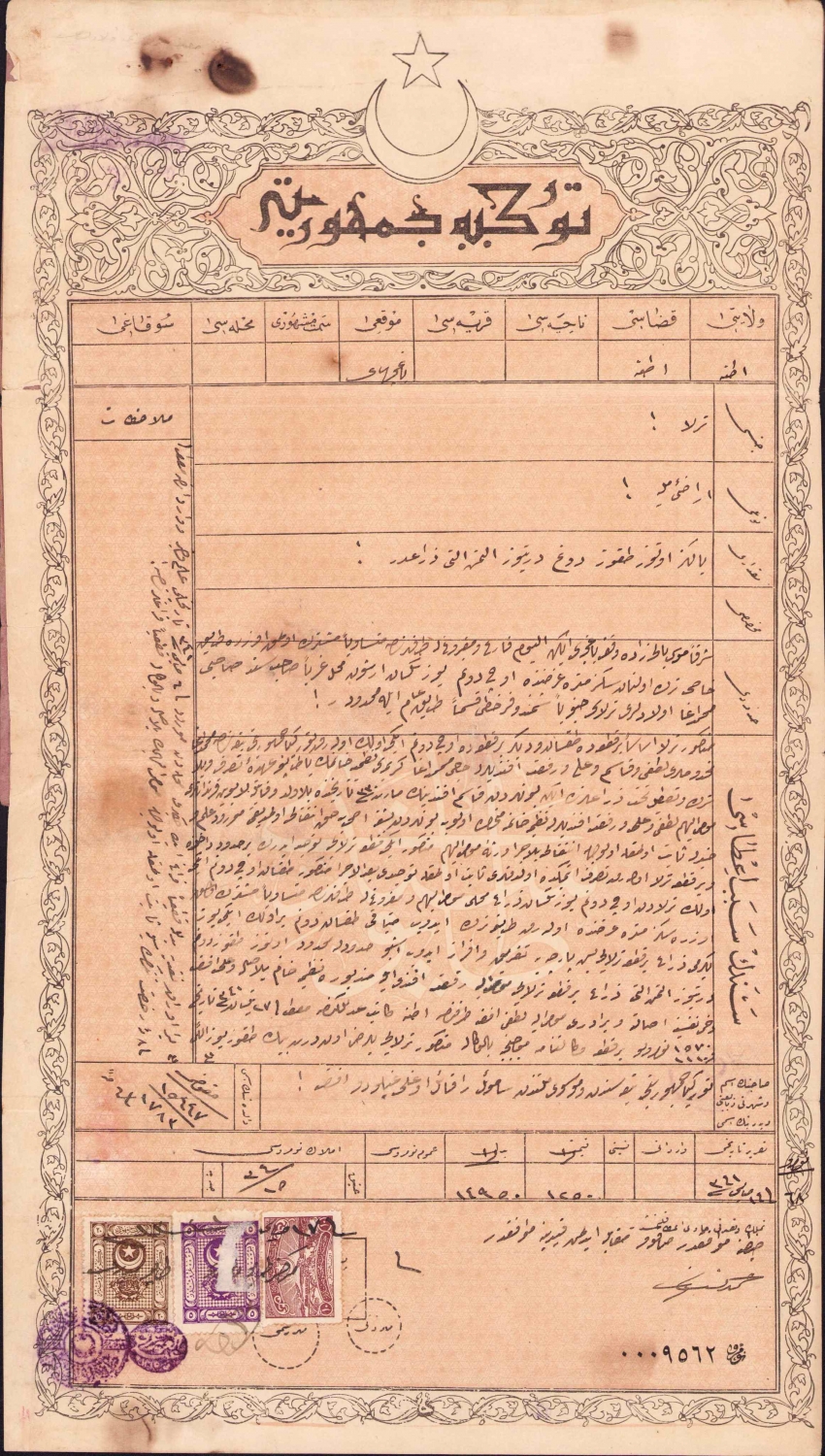 Osmanlıca tapu, Adana, 1341, orijinal cildinde, 12x32 cm