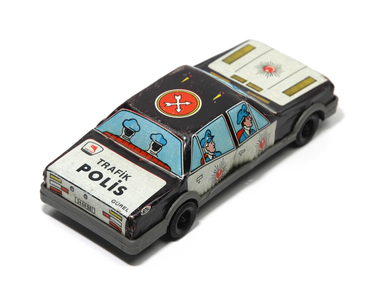 Gürel Trafik Polisi teneke araba, Petrol Ofisi görselli, 18x7x4 cm