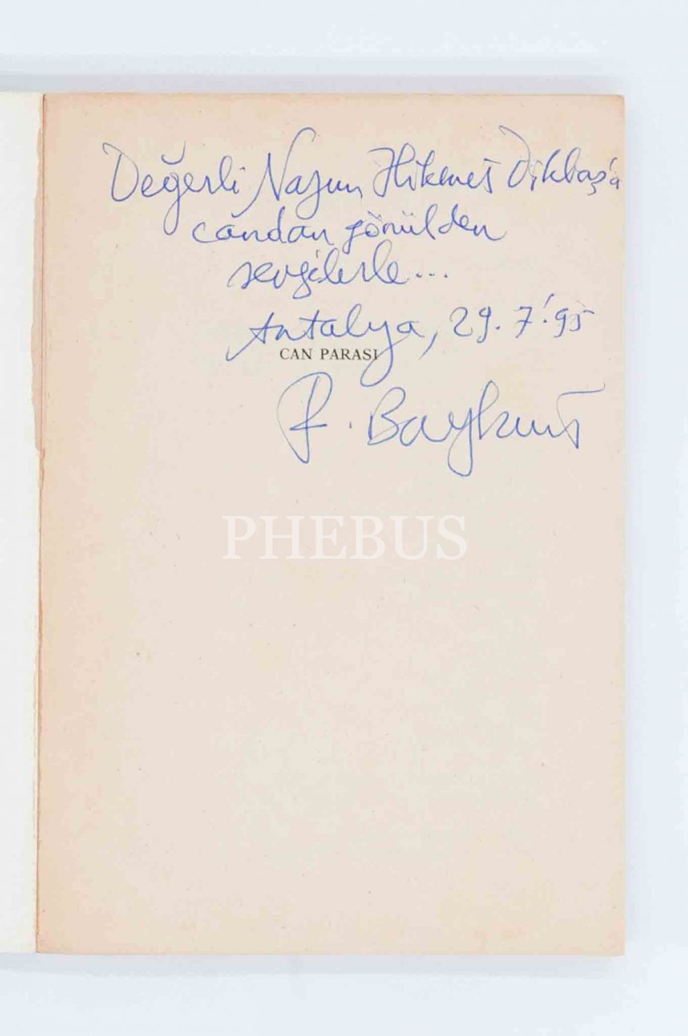 İthaf, "Değerli Nazım Hikmet Dikbaş´a candan gönülden sevgilerle... Antalya, 29.7.95, F. Baykurt" şeklindedir.