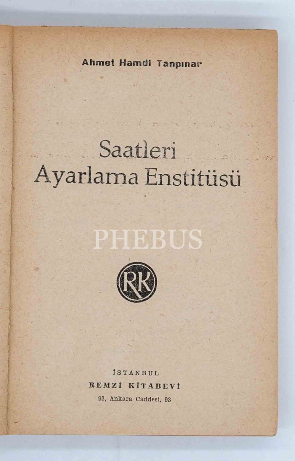 Türk edebiyatının büyük ustası Ahmet Hamdi Tanpınar´ın yayınlanan ikinci romanı: SAATLERİ AYARLAMA ENSTİTÜSÜ, 1961 (İlk baskı), Remzi Kitabevi, 371 sayfa, 14x20 cm...
