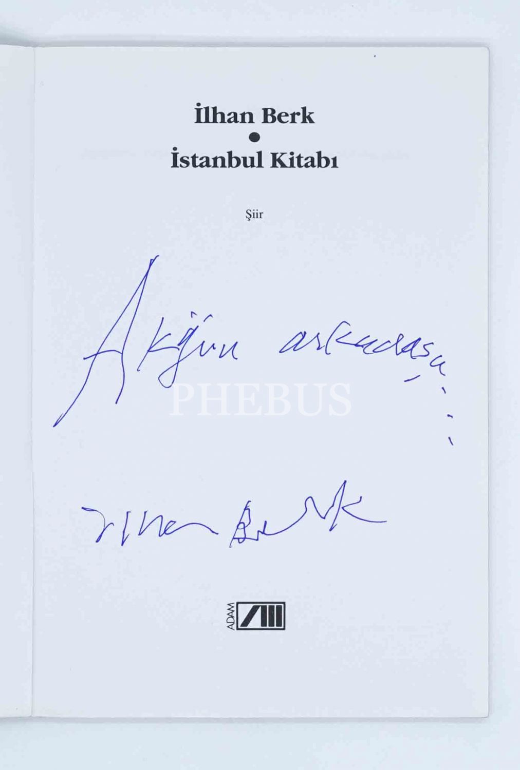 Behçet Necatigil´in ifadesiyle, "Türk şiirinin Uç Beyi" İlhan Berk´in 1980 yılında ilk Behçet Necatigil Şiir Ödülünü kazananan şiir kitabı: İSTANBUL KİTABI, Mart 1994, Adam Yayınları, 87 sayfa, 14x20 cm, İTHAFLI VE İMZALI...