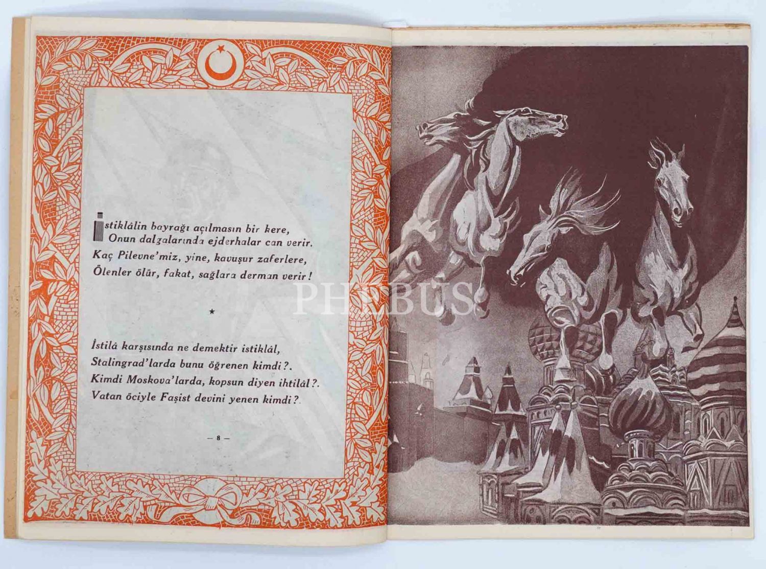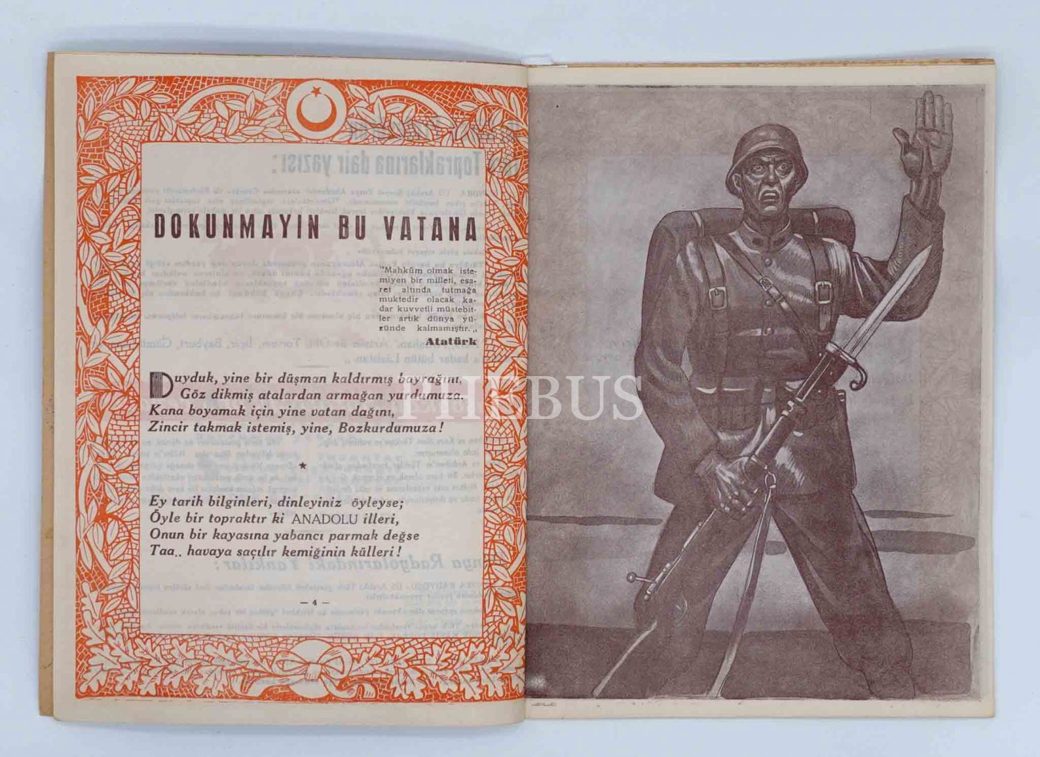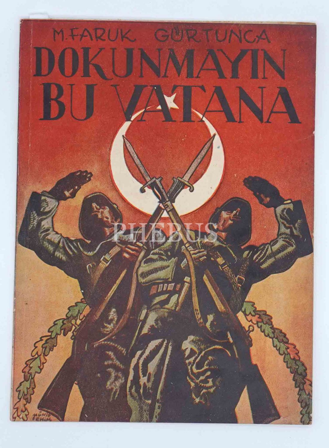M. Faruk Gürtunca´nın kurucusu olduğu Ülkü Kitap Yurdu´nda bastırdığı, Münif Fehim´in büyüleyici illüstrasyonlarıyla bezeli "Moskoflara Cevap" şiirleri: DOKUNMAYIN BU VATANA, 1946 (İlk baskı), 38 sayfa, 23x31 cm...