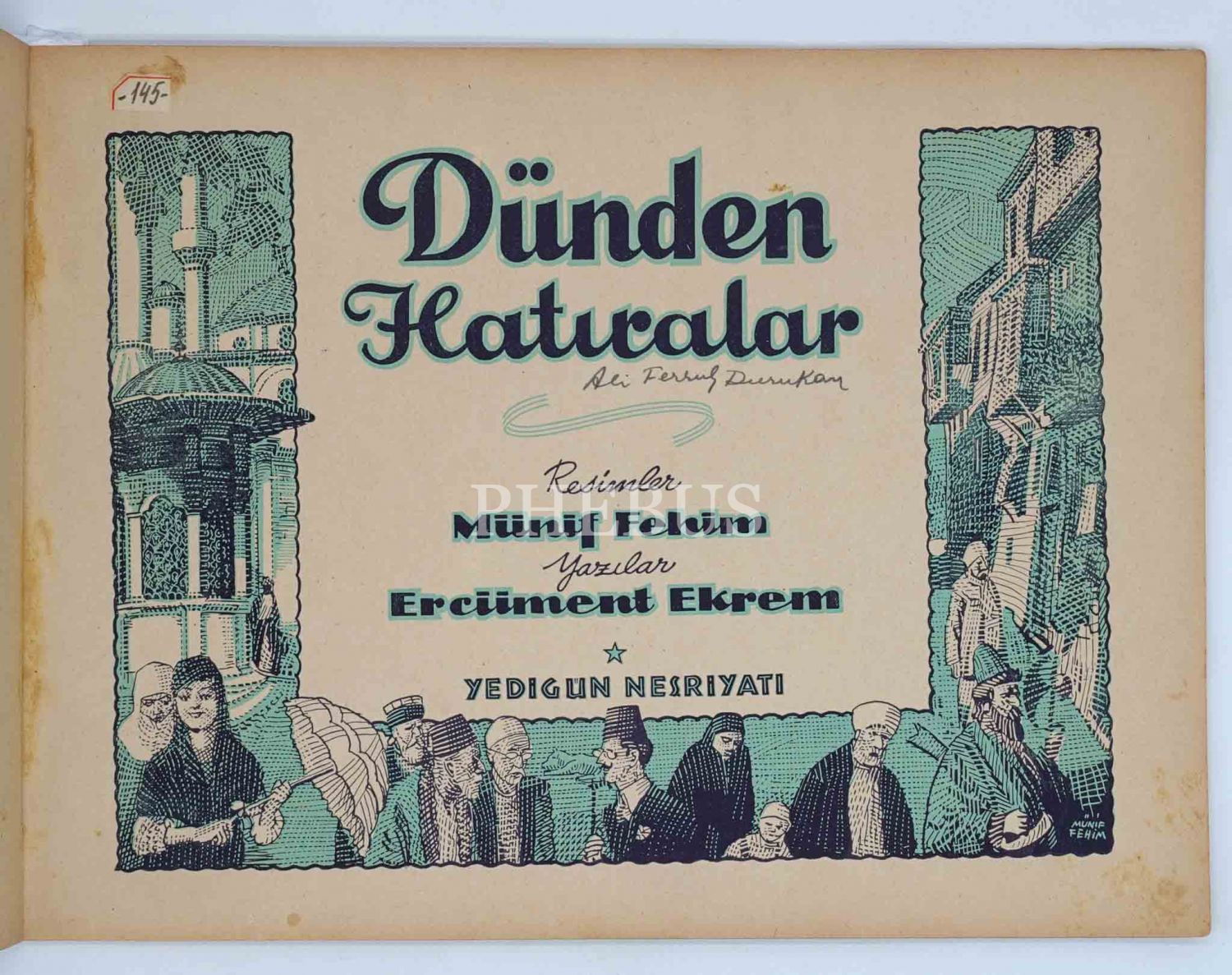 Ercüment Ekrem Tâlû´nun metinleri ve Münif Fehim´in illüstrasyonları ile Karagöz, Meddah, Kadınlar Hamamı, Kağıthane, Tulumbacılar gibi Osmanlı İstanbul´unun nostaljik tip, olay, gelenek ve mekanlarına bakış: DÜNDEN HATIRALAR, Yedigün (7 Gün) Neşriyatı, 48 sayfa, 33x24 cm...