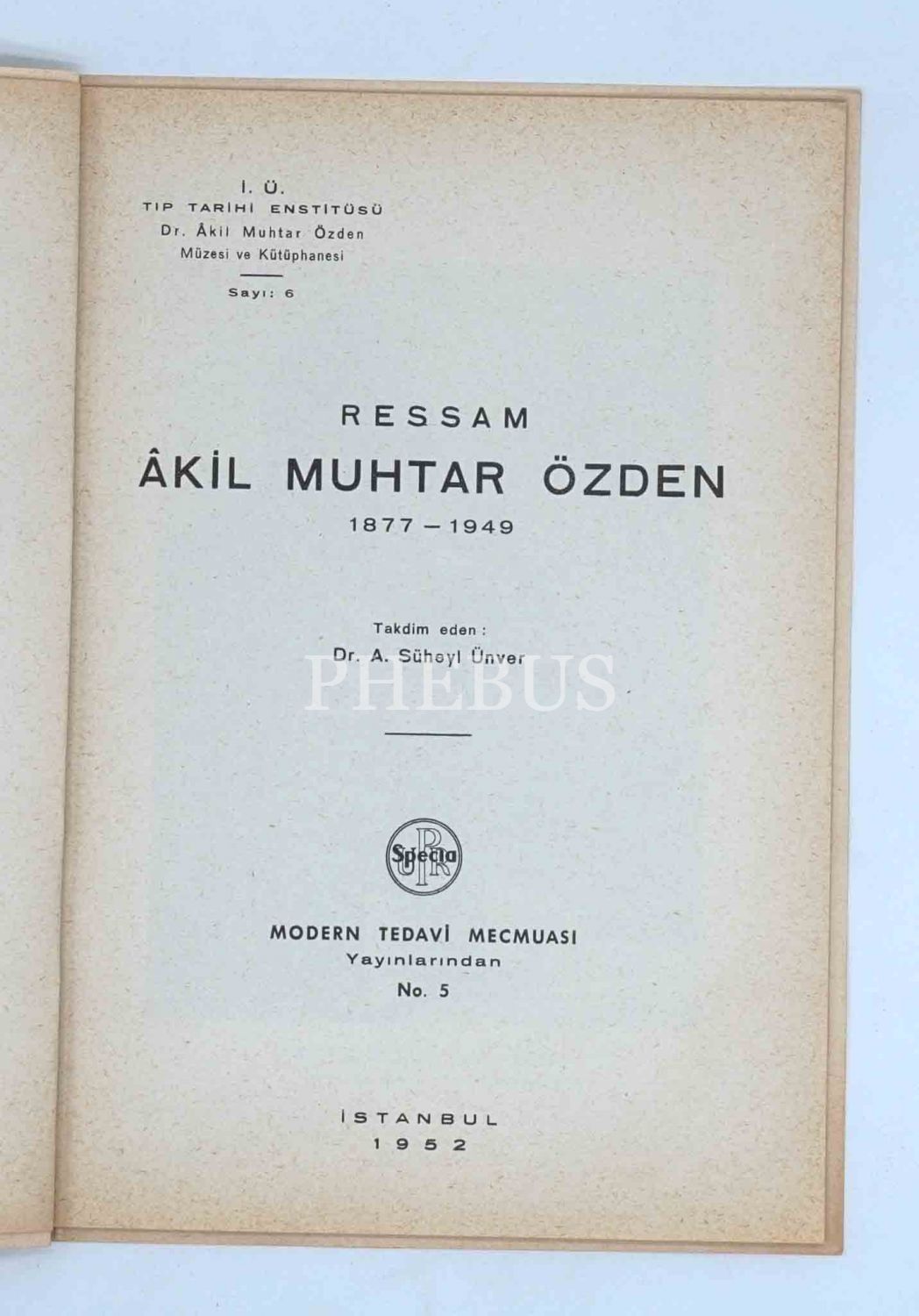 Doktor, siyasetçi ve ressam Akil Muhtar Özden´in "ressam" kimliğine öğrencisi Süheyl Ünver´in takdimiyle kısa bir bakış: RESSAM ÂKİL MUHTAR ÖZDEN (1877-1949), 1952, Modern Tedavi Mecmuası Yayınlarından No. 5, 13 sayfa metin + görseller, 17x24 cm...