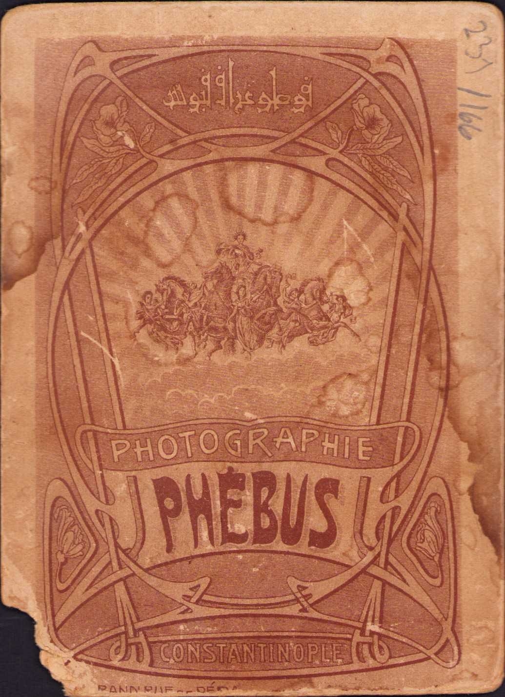 Phebus Fotoğrafhanesi kabin fotoğrafı, Osmanlı dönemi tip, bir kenarı kopuk, 9x12 cm
