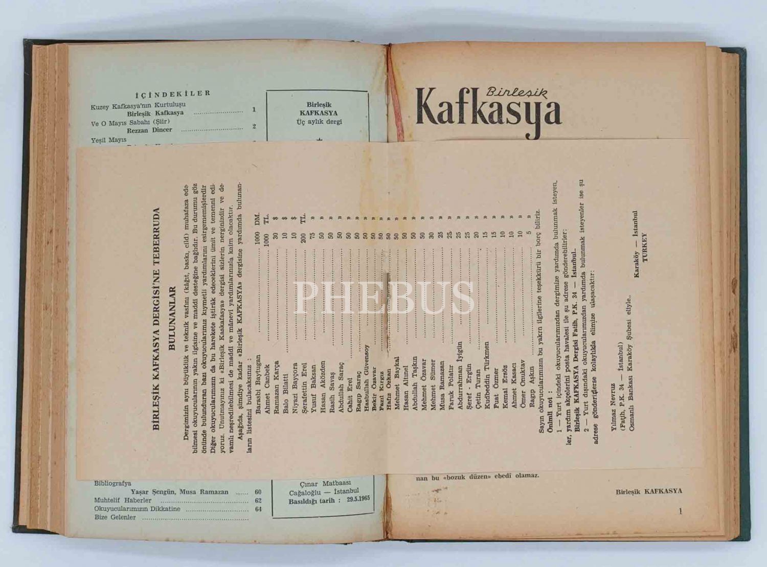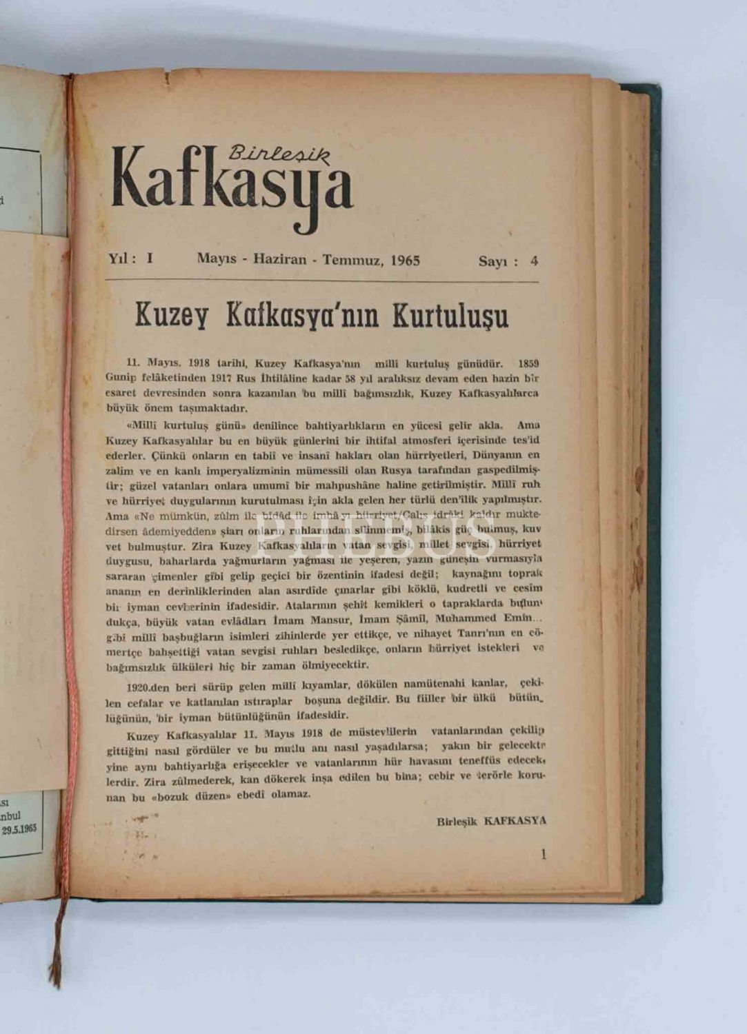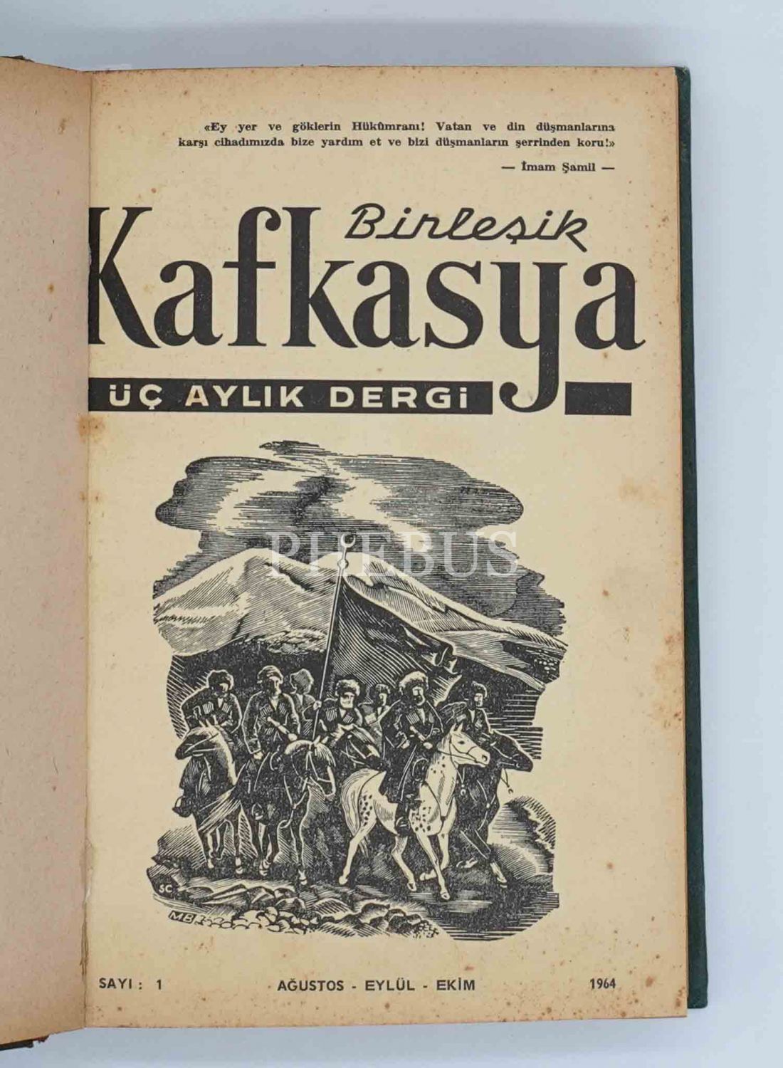 "Üç Aylık Dergi" BİRLEŞİK KAFKASYA´nın 1964 ilâ 1965 yılları arasında yayınlanan ilk 6 sayısı tek ciltte, 17x24 cm...