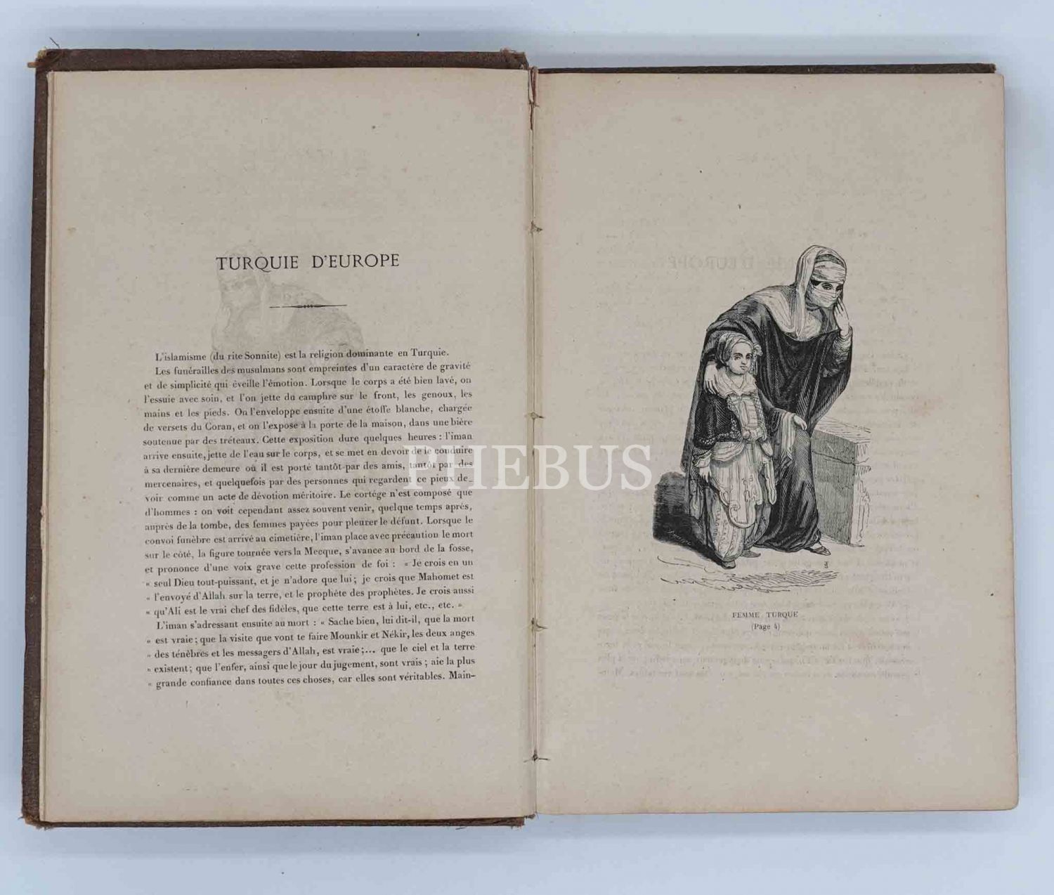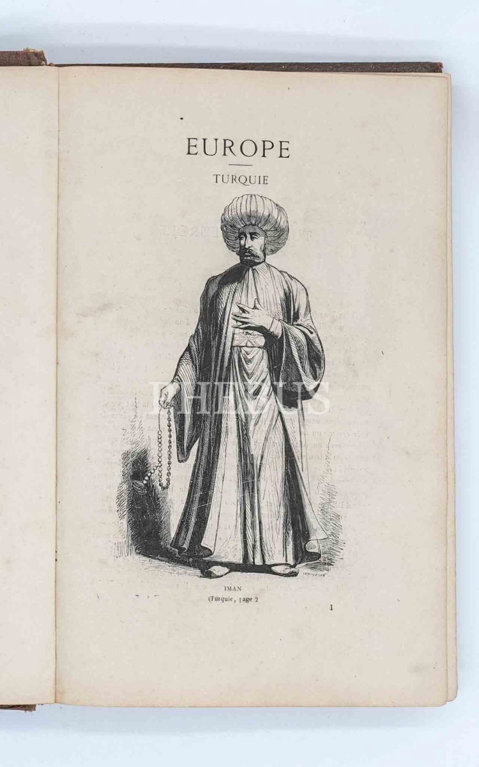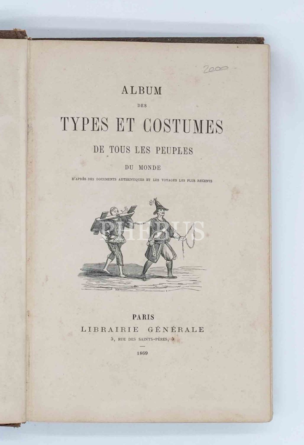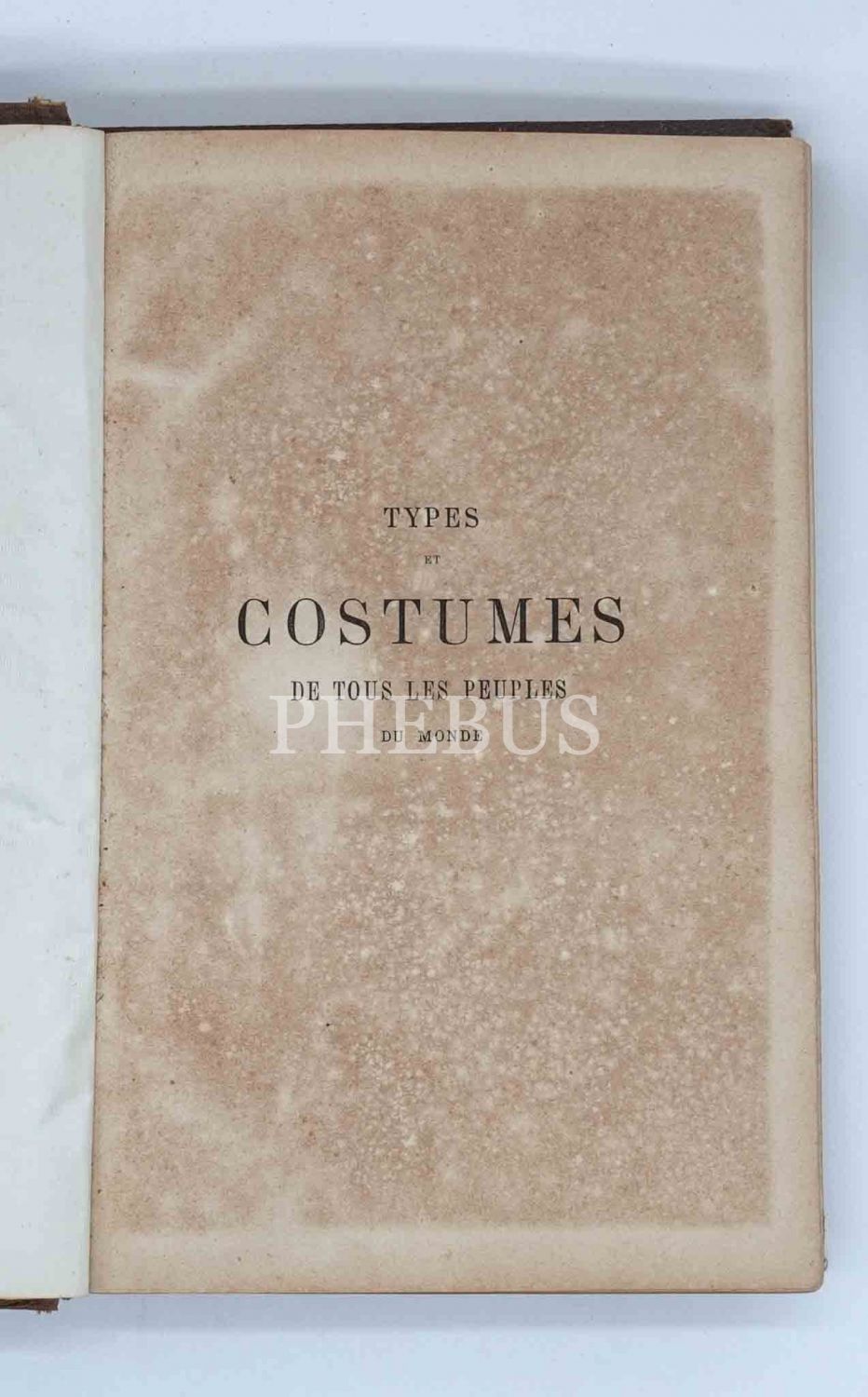 Döneminde dünya üzerinde yaşayan halkların tiplerine ve kostümlerine 200 adet gravürle yer veren ALBUM DES TYPES COSTUMES DE TOUS LES PEUPLES DU MONDE, 1869, Paris Libraire Generale, 401 sayfa, 17x27 cm...