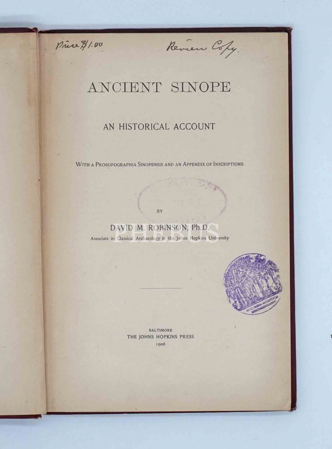 Johns Hopkings Üniversitesi´nde (ABD) Klasik Arkeoloji Doçenti olarak görev yapan David M. Robinson´un kaleminden Antik Sinop: ANCIENT SINOPE (An Historical Account), 1906, The Johns Hopkins Press, Baltimore, 207 sayfa, 16x24 cm...