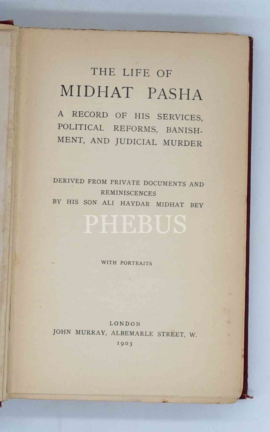 Oğlu Ali Haydar Midhat´ın kaleminden Midhat Paşa´nın hizmetleri, siyasi reformları, sürgünü ve sürgünde öldürülüşü: THE LIFE OF MIDHAT PASHA, 1903, John Murray, London, 292 sayfa, 16x23 cm...