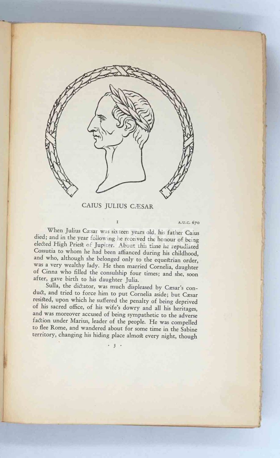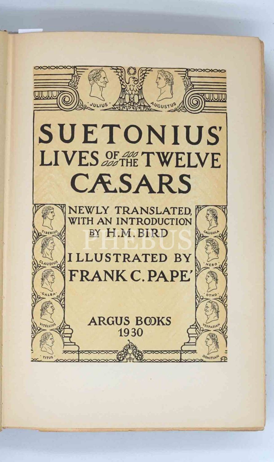 Romalı tarihçi ve biyografi yazarı Suetonius´un, Jül Sezar´dan başlayarak Roma İmparatorluğu´nun ilk 12 imparatorunun biyografisini kaleme aldığı eserinin 1930 tarihli, mühim olayları tasvir eden etkileyici gravürlerle bezeli sınırlı basım İngilizce kopyası, Argus Books, 390 sayfa, 19x27 cm...