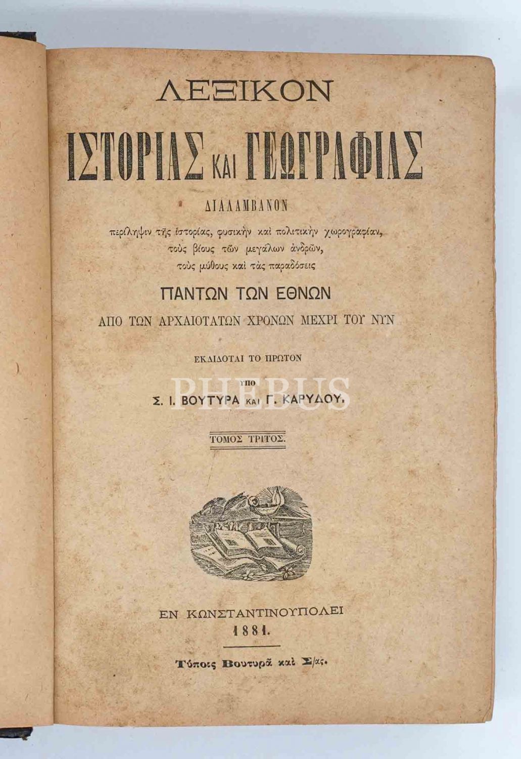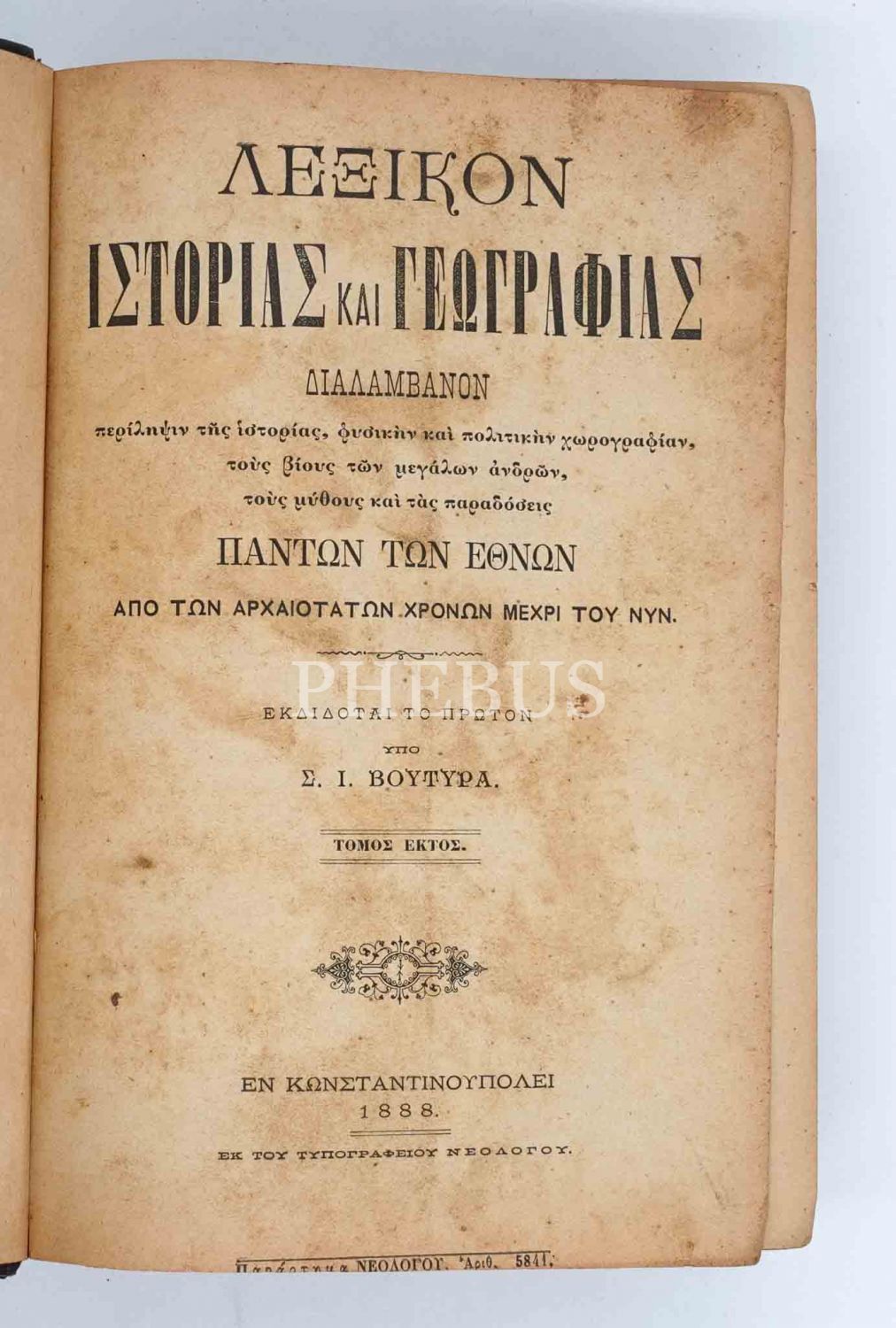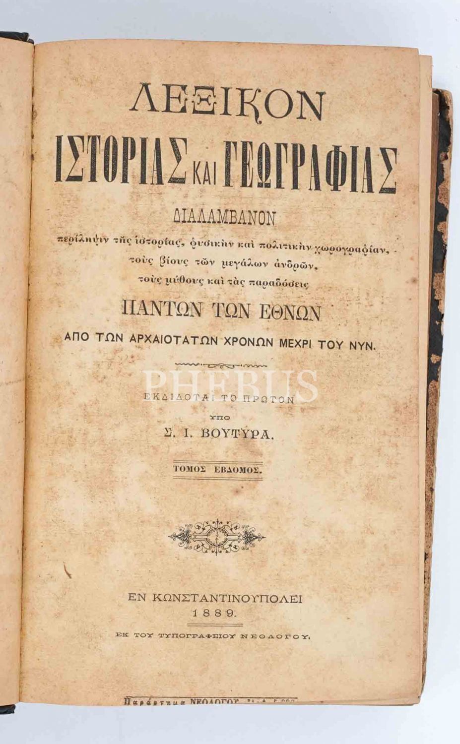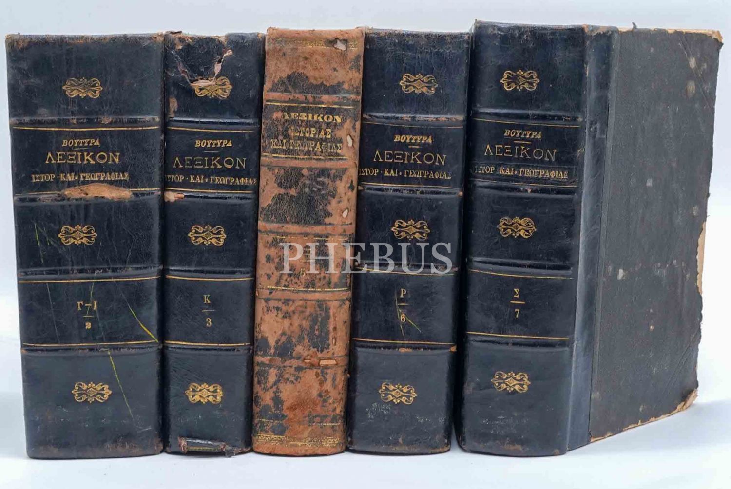 Constantinople baskı Rumca TARİH VE COĞRAFYA SÖZLÜĞÜ (Cilt 2, 3, 5, 6 ve 7), 1871-81-88-89, 16x24 cm...