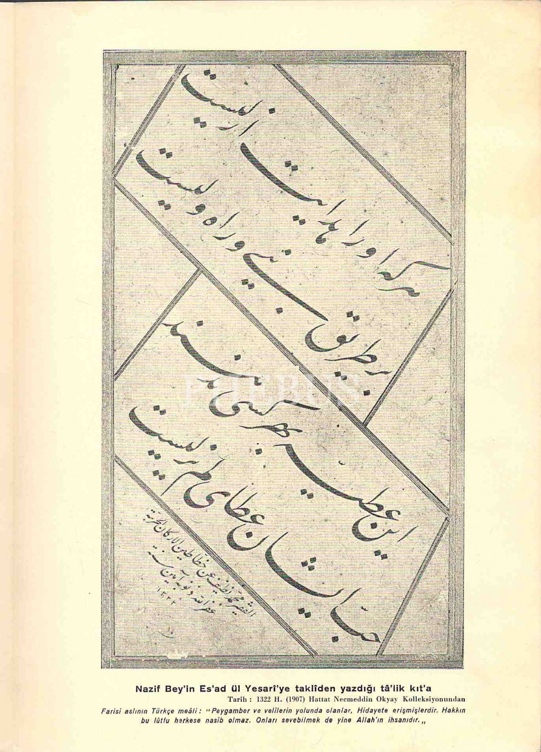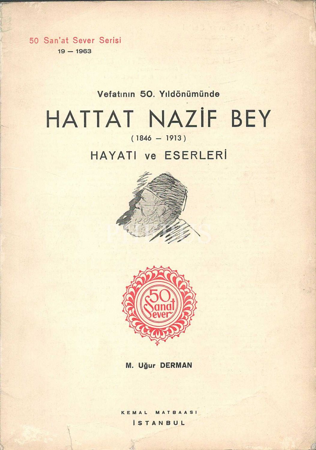 "VEFATININ 50. YILDÖNÜMÜNDE HATTAT NAZİF BEY (1846-1913) HAYATI VE ESERLERİ" başlıklı 50 Sanat Sever Serisi´nin 1963 tarihli 19 numaralı sayısı, M. Uğur Derman, 3 sayfa, 17x25 cm...