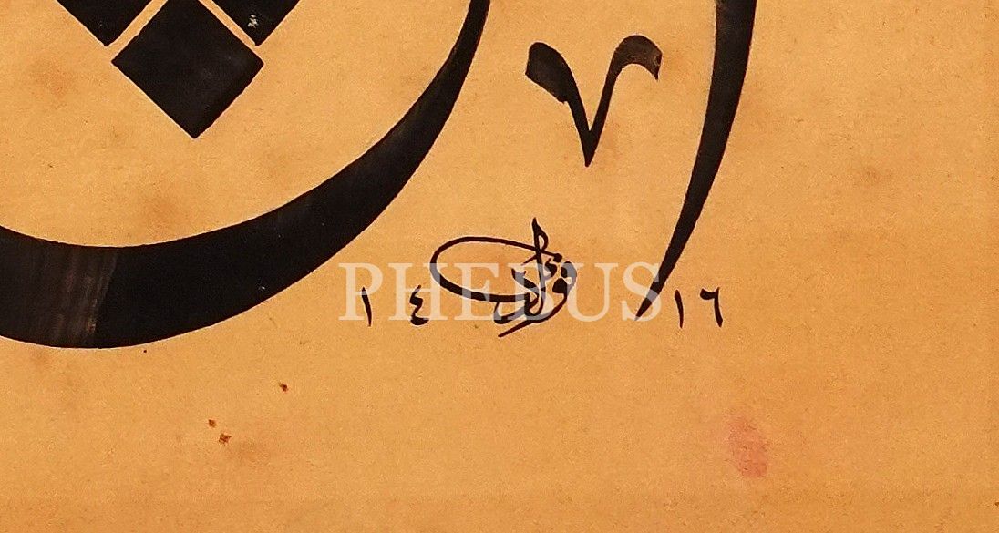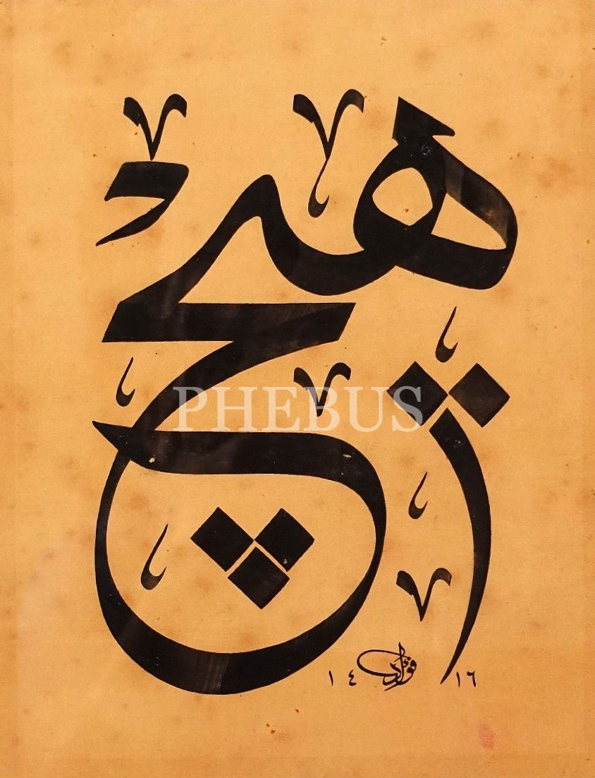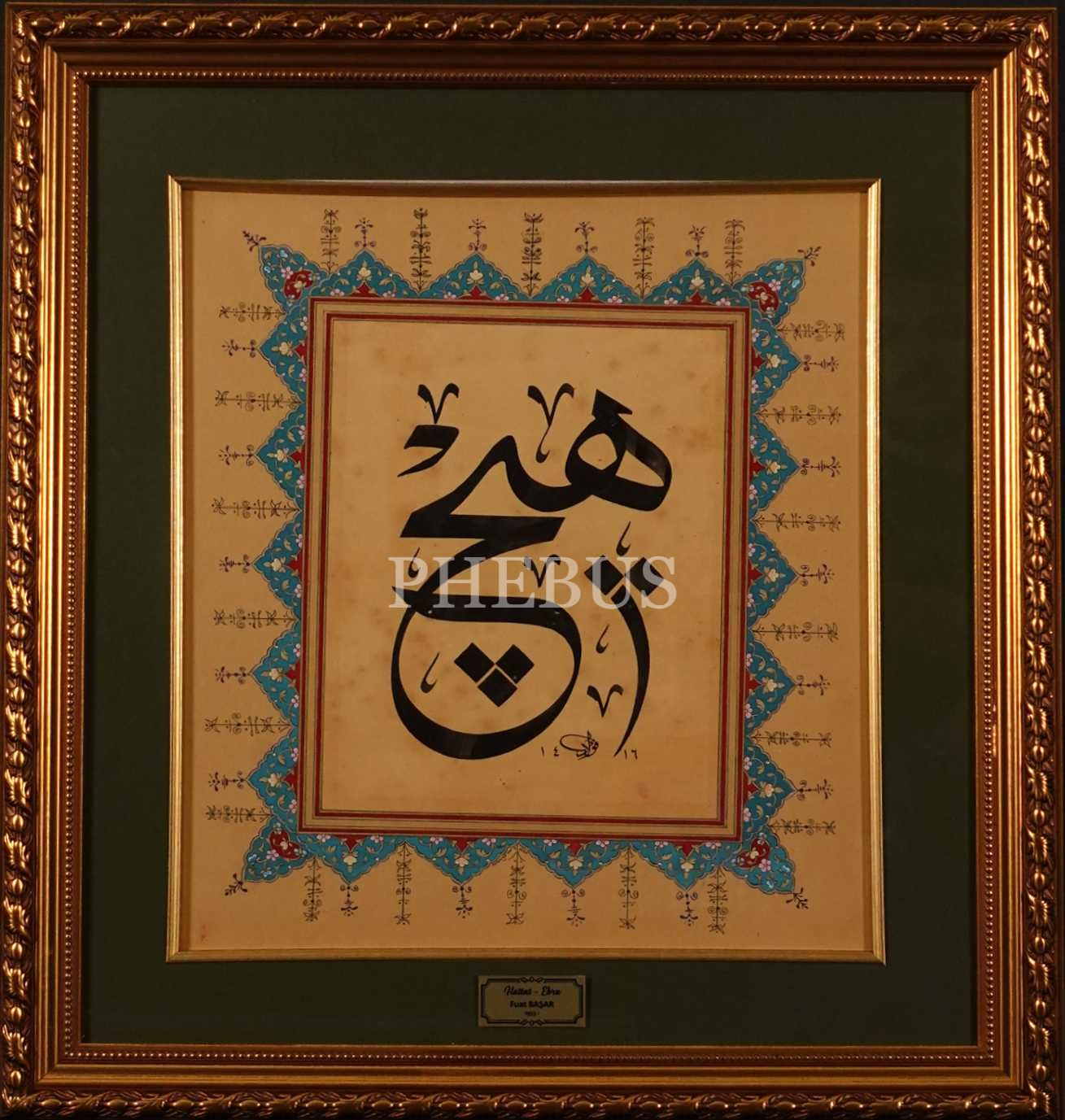 Fuat [Başar] ketebeli celi sülüs "Hiç" yazılı levha, çerçeve: 52x57 cm, yazı: 34x29 cm...