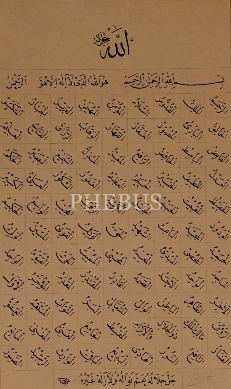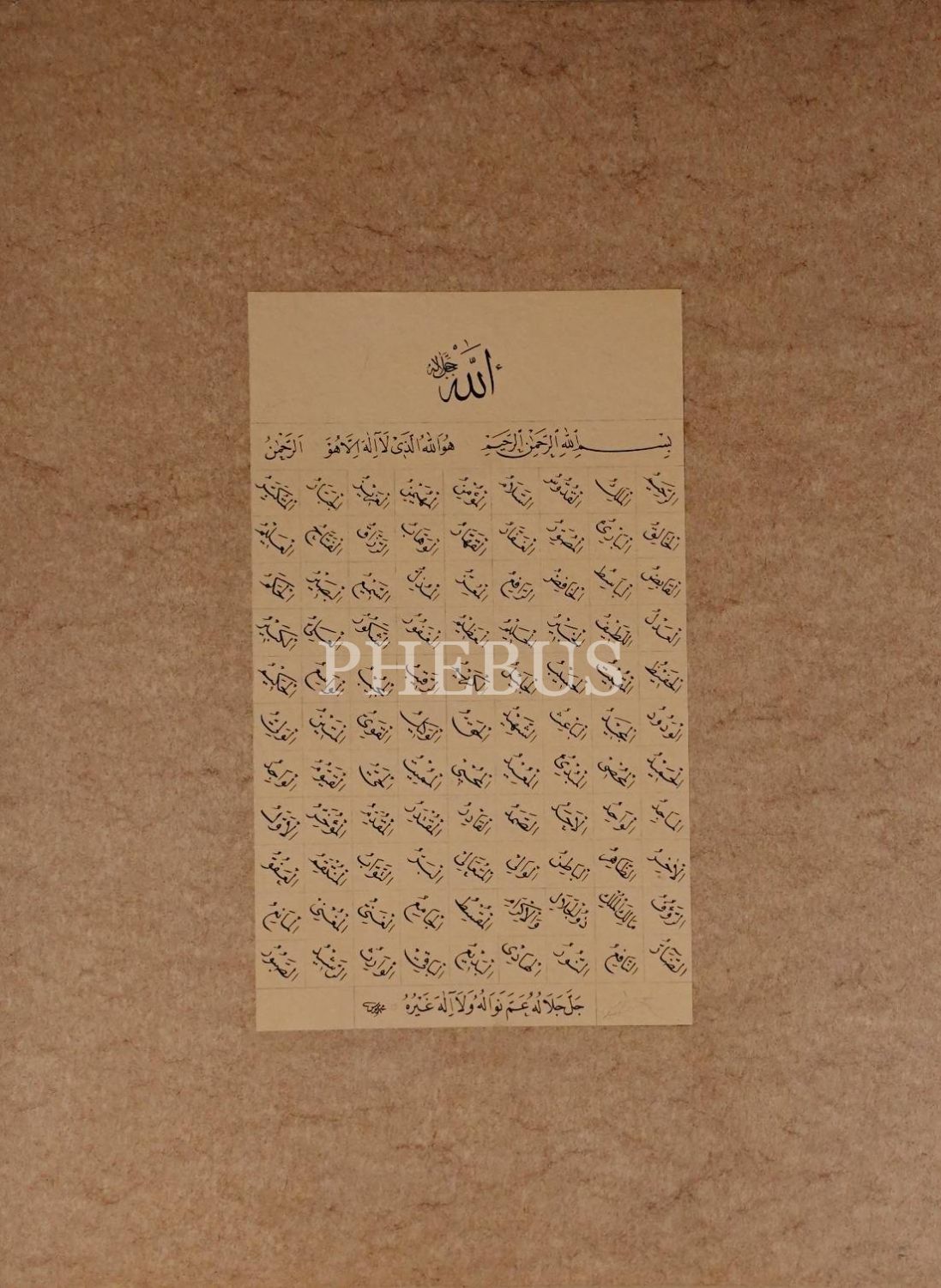 Mehmet [Memiş] ketebeli sülüs-nesih Esma-i Hüsna levhası, 37x50 cm...