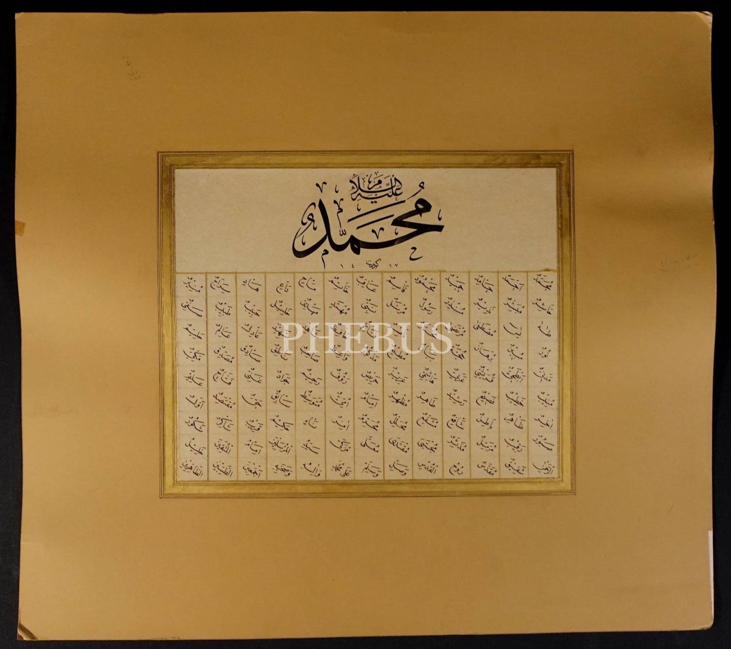Kerim [Erbilli] ketebeli Esma-i Nebi yazılı sülüs-nesih levha, 1417, 60x55 cm...