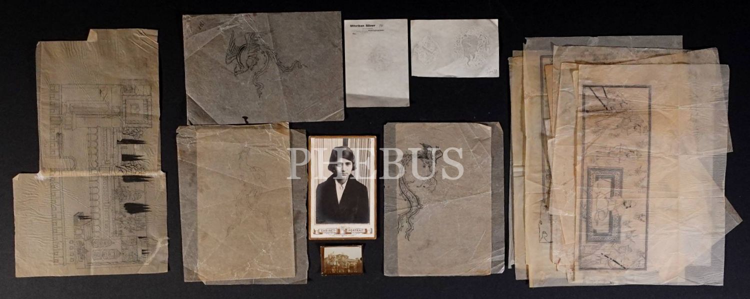 İçerisinde Mihriban Sözer´in kaleminden tezhip ve minyatür çalışmaları, Mihriban Hanım´ın kabin fotoğrafı, Mihriban Sözer antetli bir adet kağıdın yer aldığı tereke...