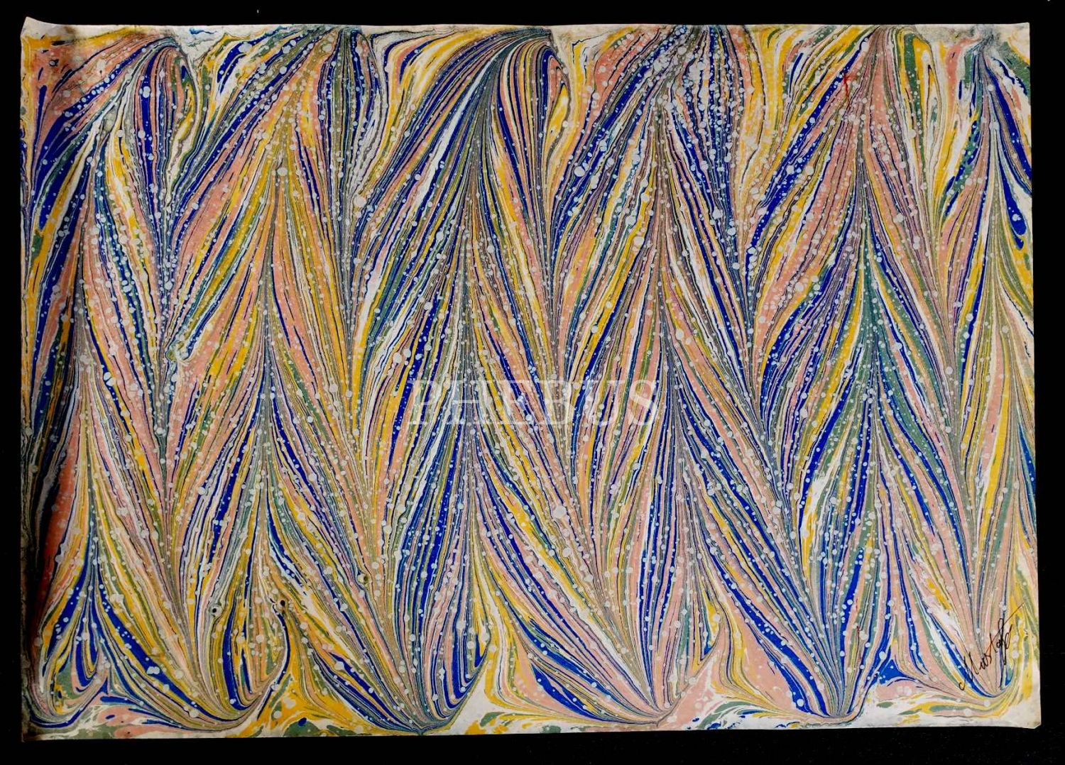 Mustafa Düzgünman ıslak imzalı taraklı ebru, 33x44 cm...