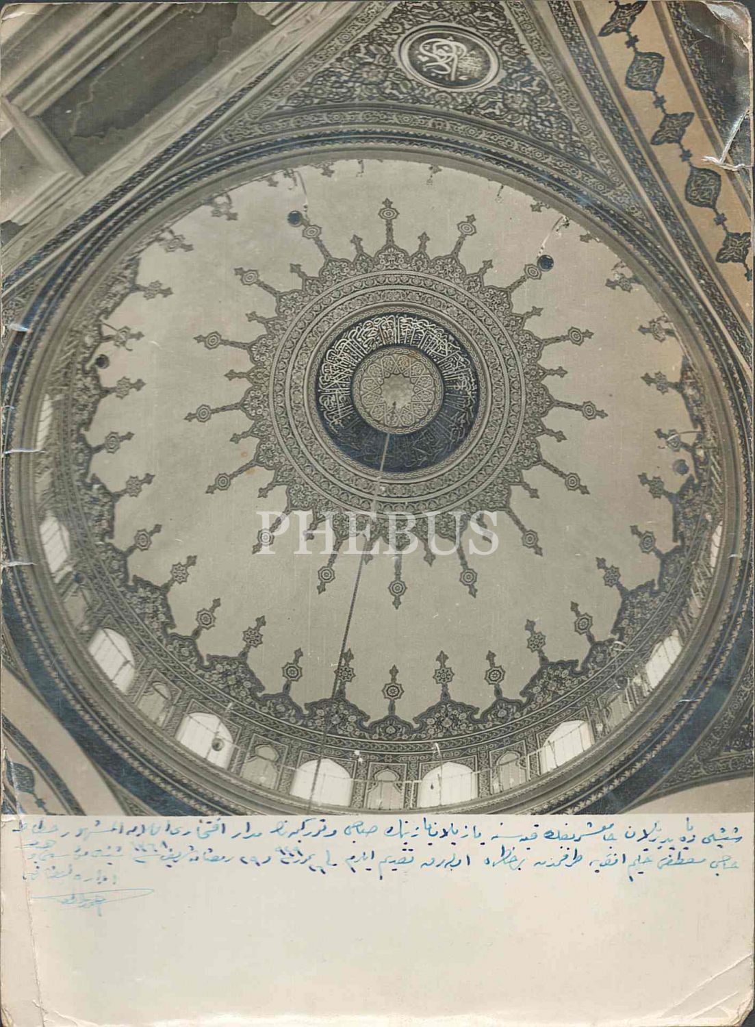Fotoğrafın alt kısmında yer alan not "Şişli´de yaptırılan cami şerifin kubbesine yazılan yazının sahibi ve Türkiye´nin medarı iftiharı Meşhur Hattat Hacı Mustafa Halim Efendi´ye tarafımızdan hatıra olarak takdim eylerim" şeklindedir.