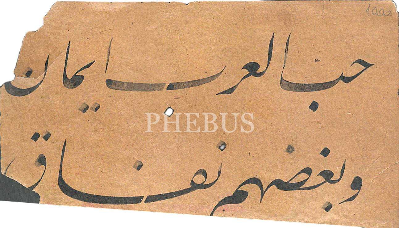 Halim Özyazıcı terekesinden ta'lik yazı,"Hubbu’l-arabi imânun ve buğduhum nifâkun", 1334, 17x11 cm...