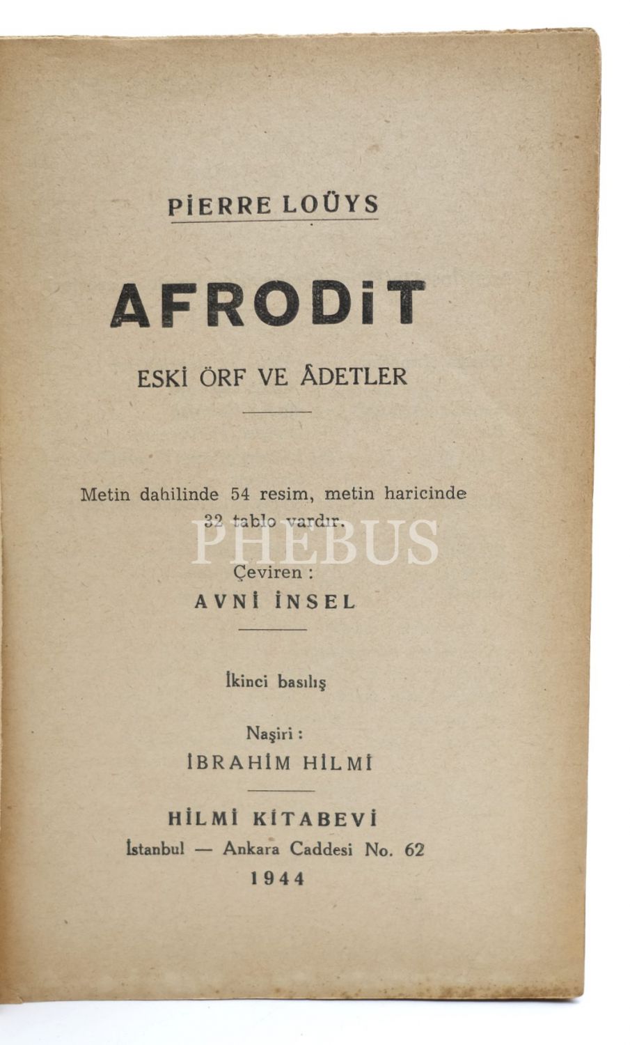 AFRODİT, Pierre Louys, çeviren: Avni İnsel, 1944, Hilmi Kitabevi, 284 sayfa...