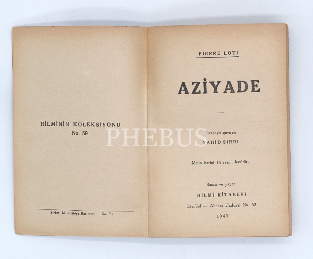 AZİYADE, Pierre Loti, çeviren: Nahid Sırrı, 1940, Hilmi Kitabevi, 225 sayfa...