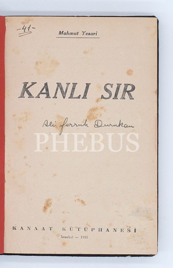 KANLI SIR, Mahmut Yesari, 1935, Kanaat Kütüphanesi, 359 sayfa...