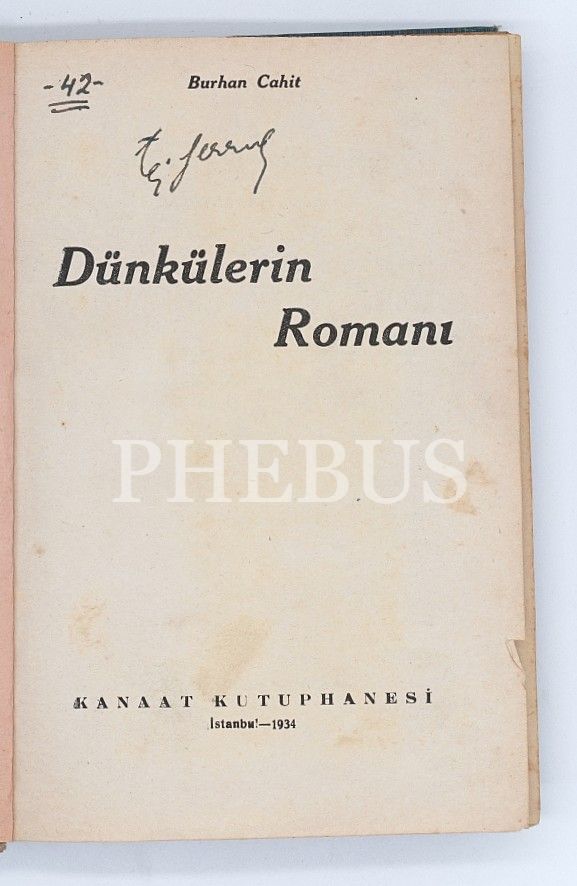 DÜNKÜLERİN ROMANI, Burhan Cahit, 1934, Kanaat Kütüphanesi, 270 sayfa...