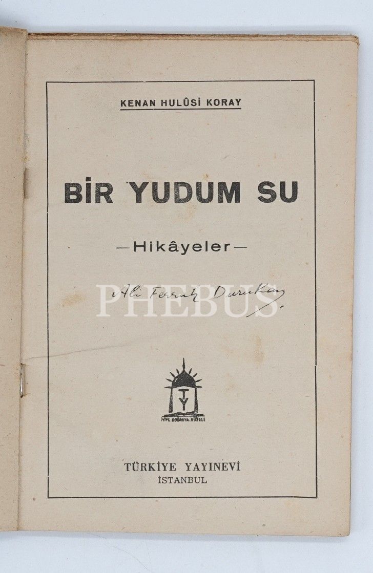 BİR YUDUM SU (Hikayeler), Kenan Hulusi, 1944, Türkiye Yayınevi, 143 sayfa...