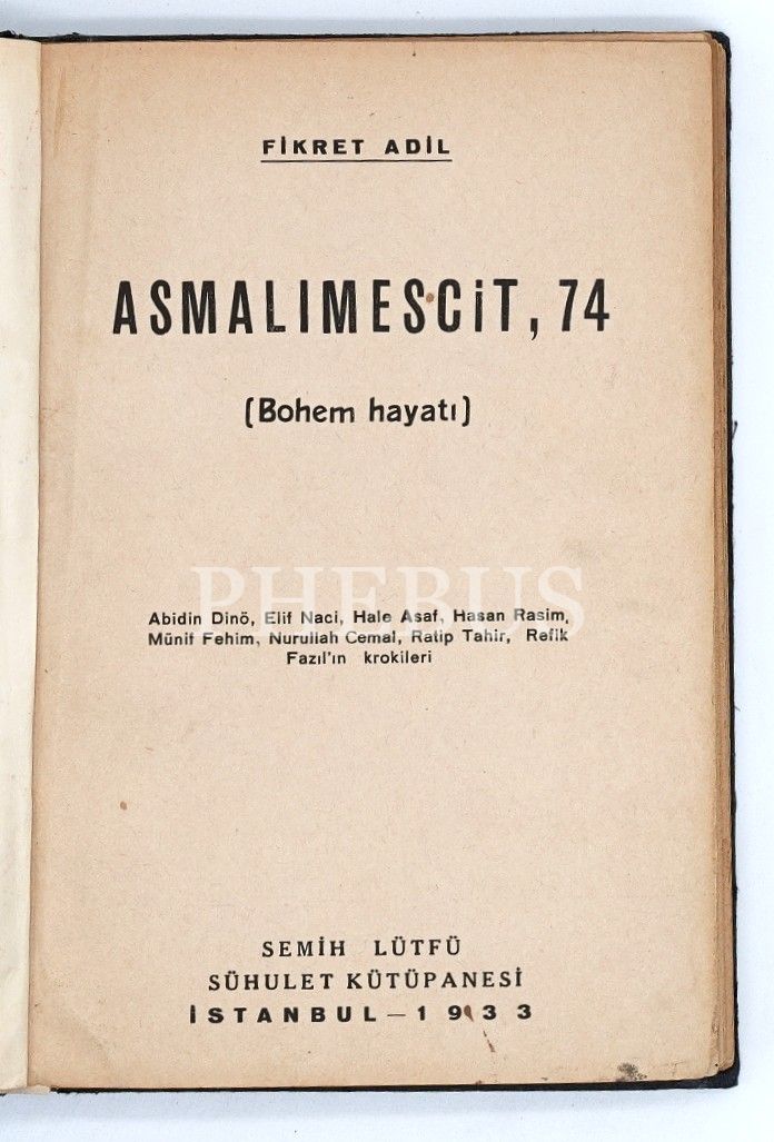 ASMALI MESCİT, 74 (Bohem Hayatı), Fikret Adil, 1933, Sühulet Kütüpanesi, 160 sayfa...