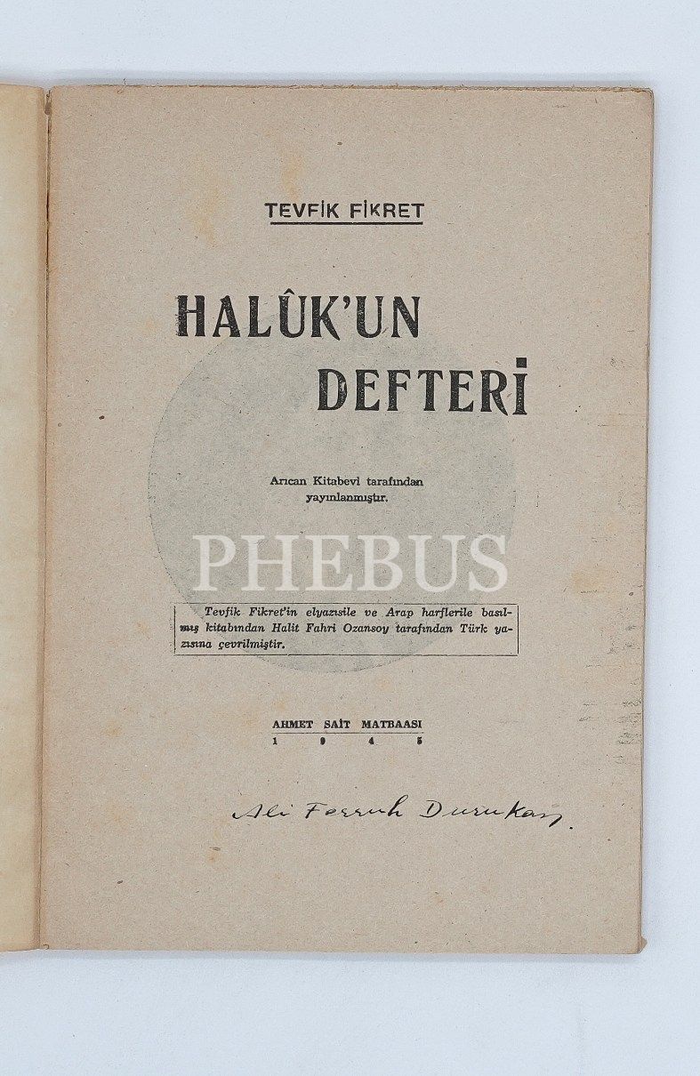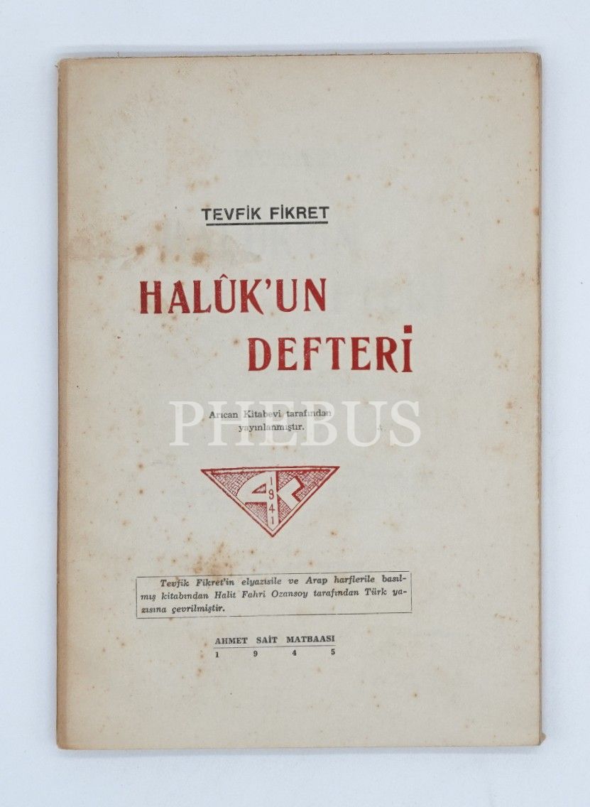 HALUK´UN DEFTERİ, Tevfik Fikret, 1945, Ahmet Sait Matbaası, 101 sayfa...