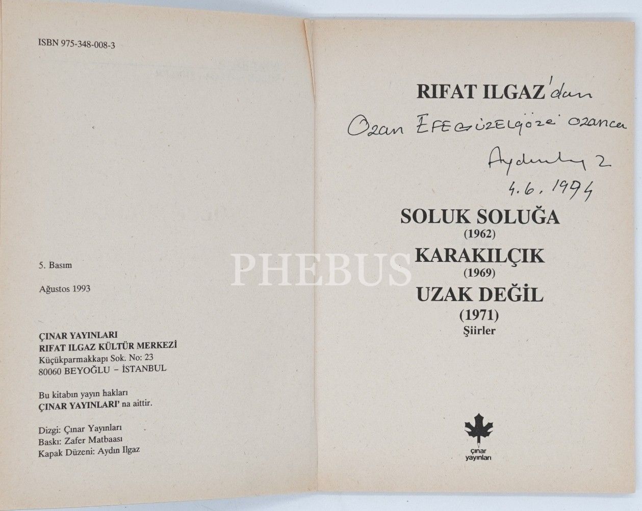 SOLUK SOLUĞA KARAKILÇIK/ UZAK DEĞİL, Rıfat Ilgaz, 1993, Çınar Yayınları, 78 sayfa, Aydın Ilgaz´dan İTHAFLI VE İMZALI...
