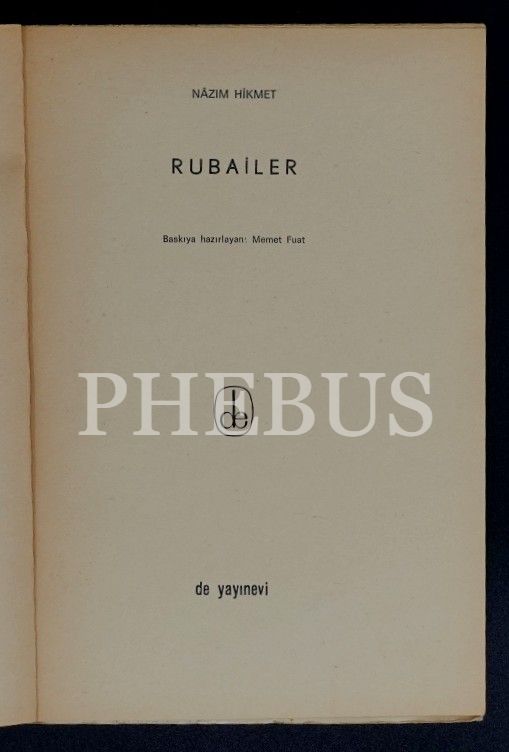 RUBAİLER, Nazım Hikmet, 1966, De Yayınevi, 35 sayfa...