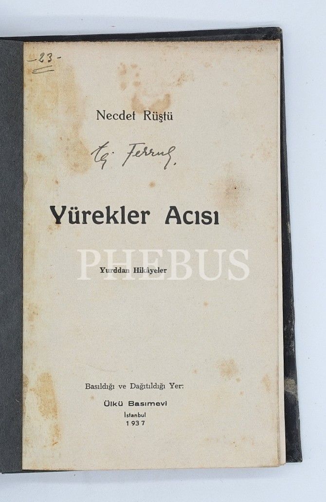 YÜREKLER ACISI, Necdet Rüştü, 1937, Ülkü Basımevi, 160 sayfa...
