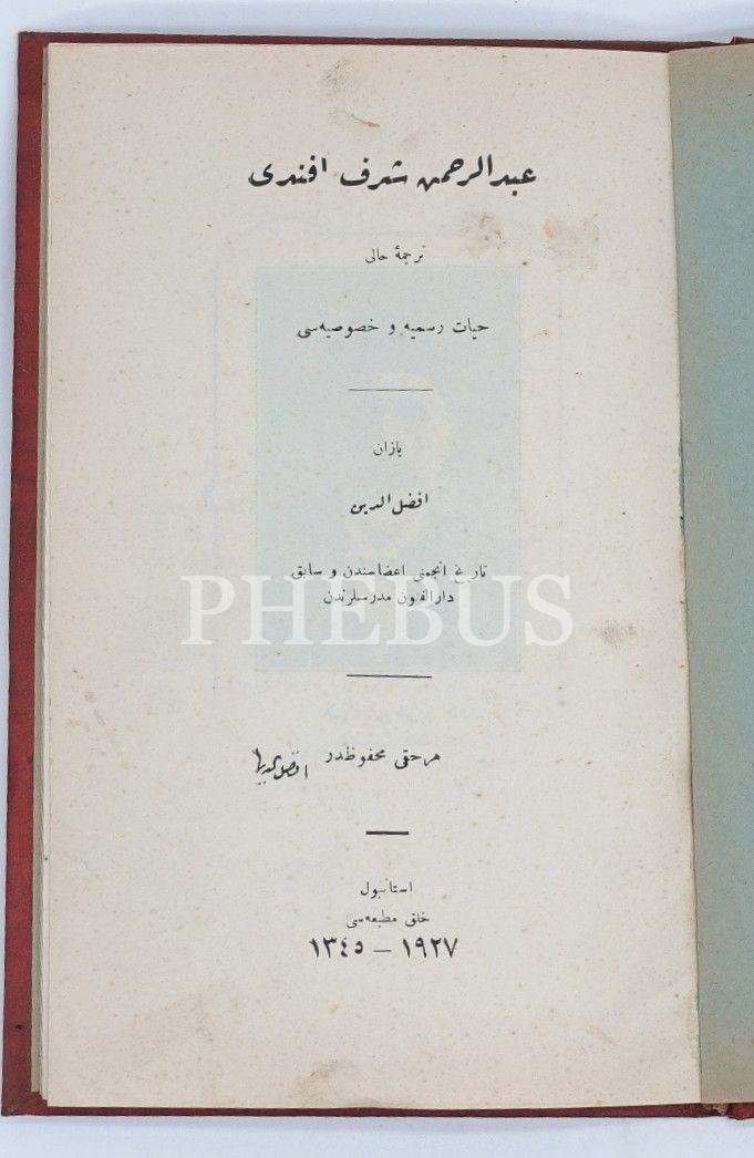 ABDURRAHMAN ŞEREF EFENDİ TERCÜME-İ HALİ, Afzaleddin, 1345, Halk Matbaası, 38 sayfa...