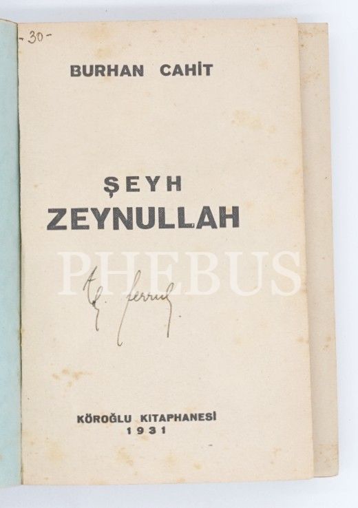 ŞEYH ZEYNULLAH, Burhan Cahit, 1931, Köroğlu Kitaphanesi, 256 sayfa...