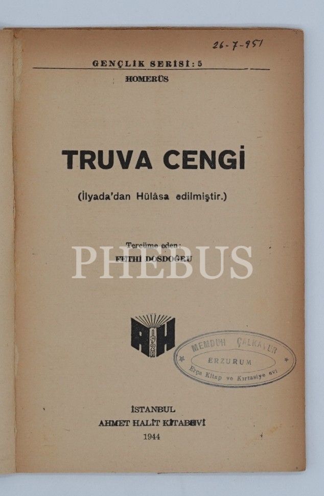HOMERUS TRUVA CENGİ, Fethi Dosdoğru, 1944, Ahmet Halit Kitabevi, 40 sayfa...