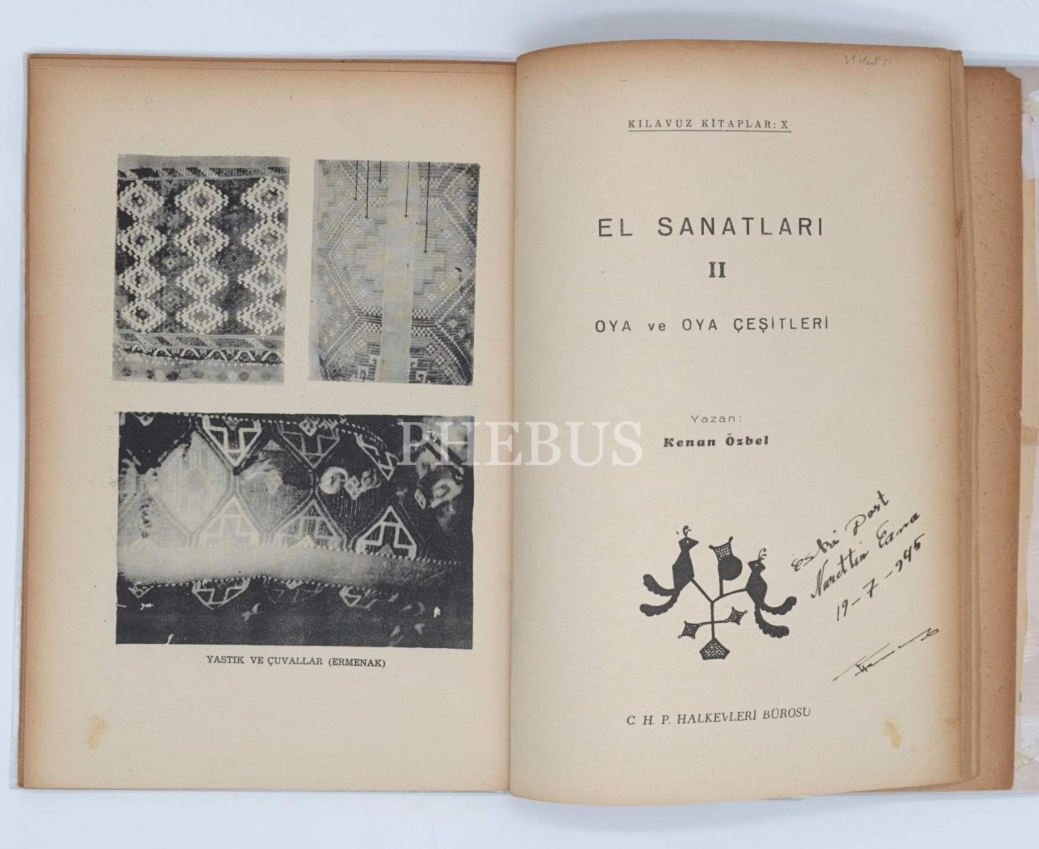 EL SANATLARI (1, 2 ve 7. kitap), Kenan Özbel, C.H.P. Halkevleri Bürosu, İTHAFLI VE İMZALI...