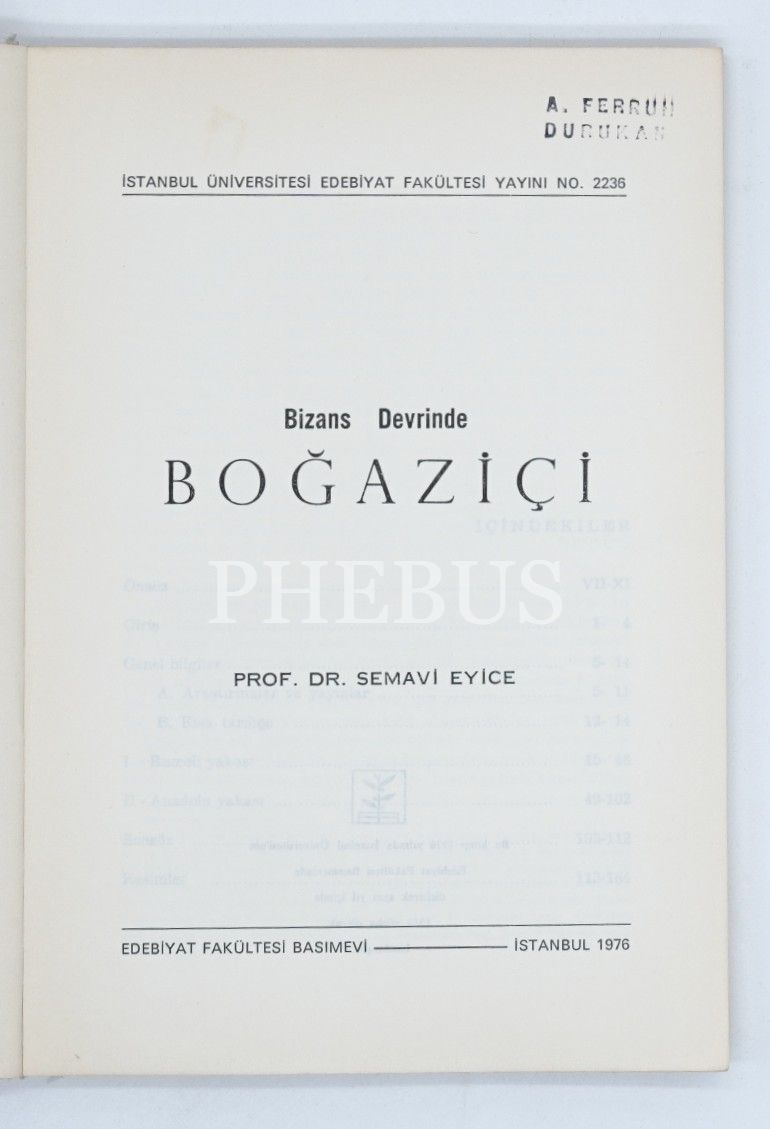 BİZANS DEVRİNDE BOĞAZİÇİ, Semavi Eyice, 1976, Edebiyat Fakültesi Basımevi, 184 sayfa...
