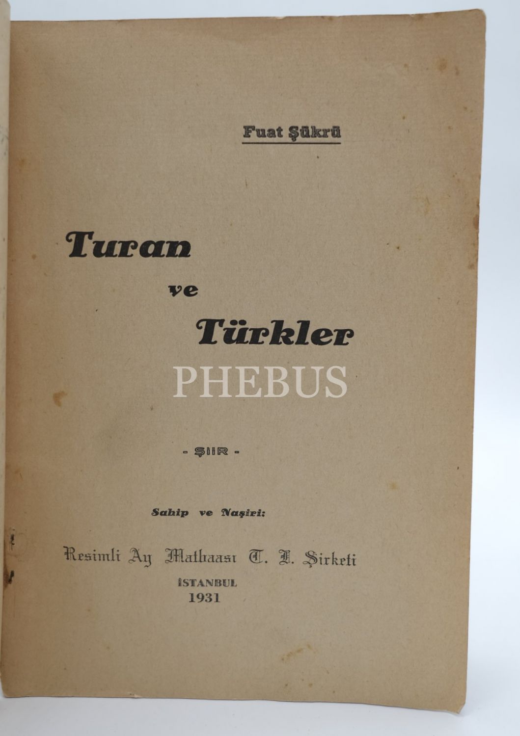 TURAN VE TÜRKLER, Fuat Şükrü, 1931, Resimli Ay Matbaası, 78 sayfa...
