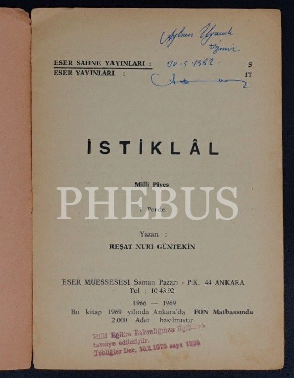 İSTİKLAL (Milli Piyes), Reşat Nuri Güntekin, 1969, Eser Yayınları, 16 sayfa...