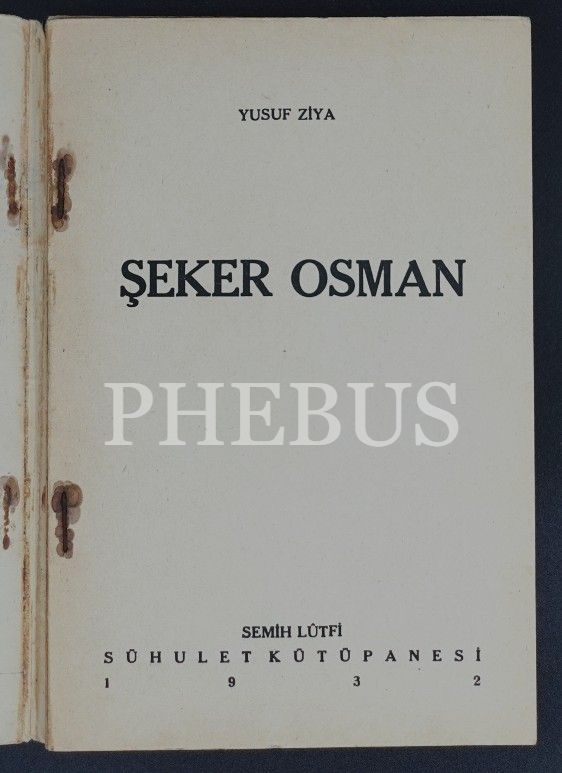 ŞEKER OSMAN, Yusuf Ziya, 1932, Sühulet Kütüphanesi, 59 sayfa...