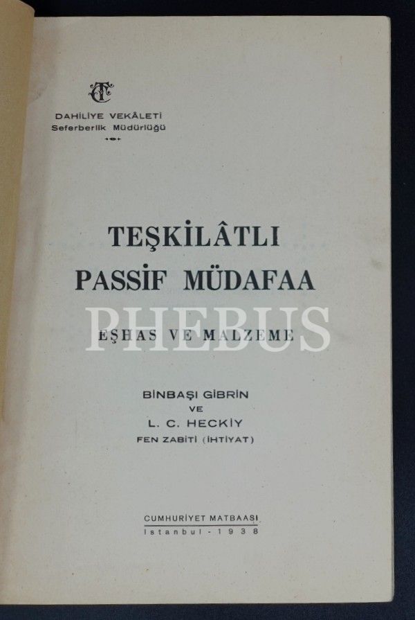 TEŞKİLATLI PASİF MÜDAFAA , Gibrin, L. C. Heckiy, 1938, Cumhuriyet Matbaası, 308 sayfa...