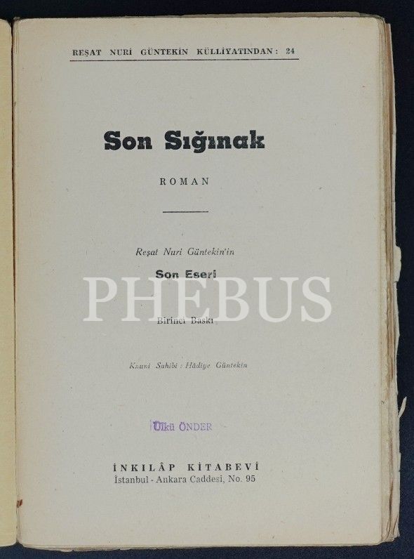 SON SIĞINAK, Reşat Nuri Güntekin, 1961, İnkılap Kitabevi, 198 sayfa...
